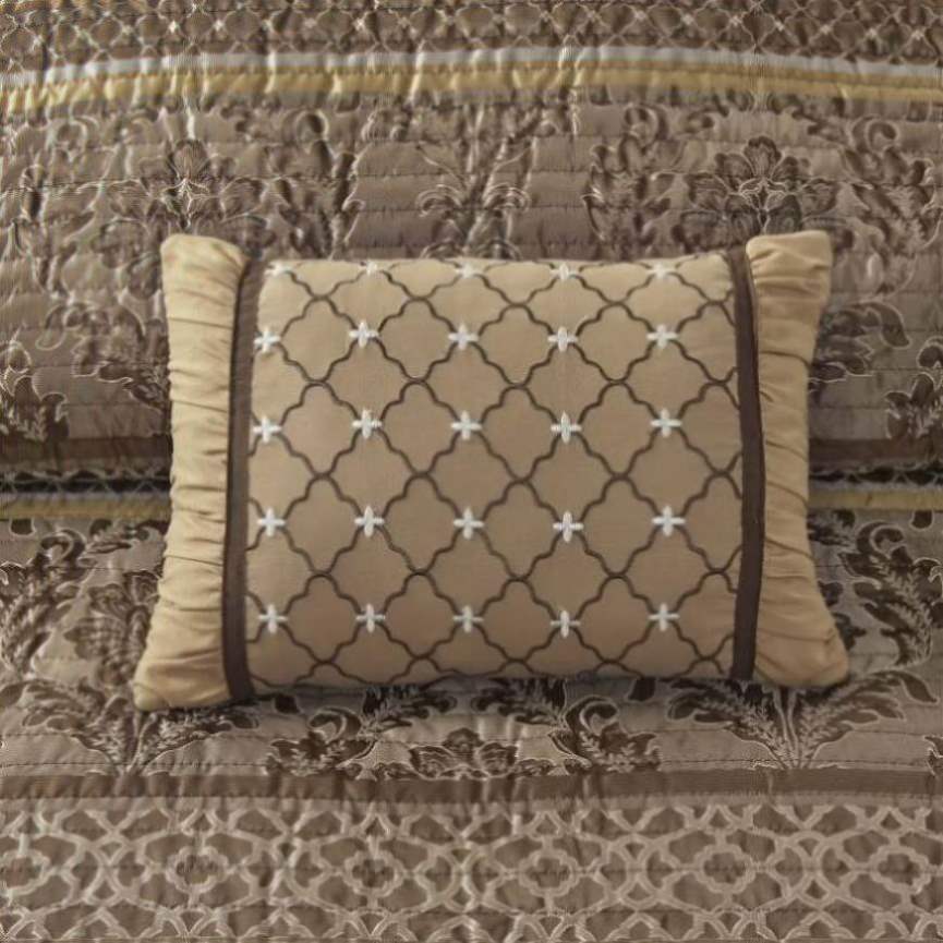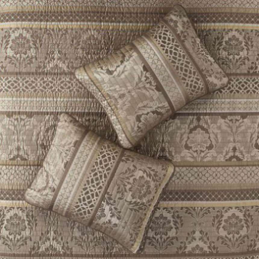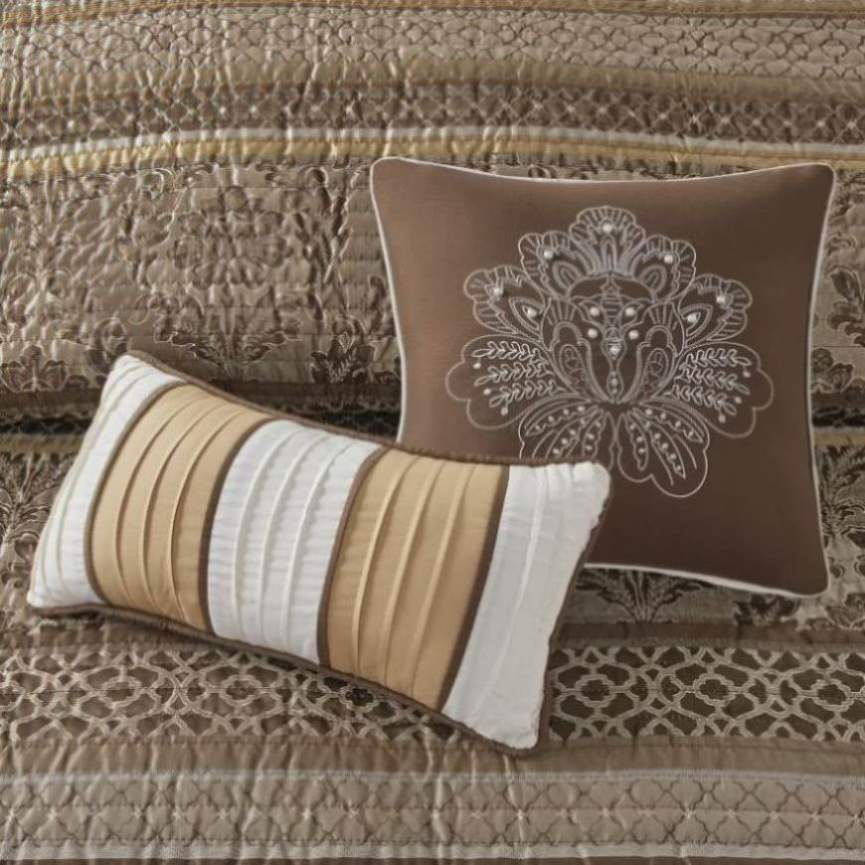 6 Piece Jacquard Quilt Set with Throw Pillows Brown/Gold King/Cal King B03597483