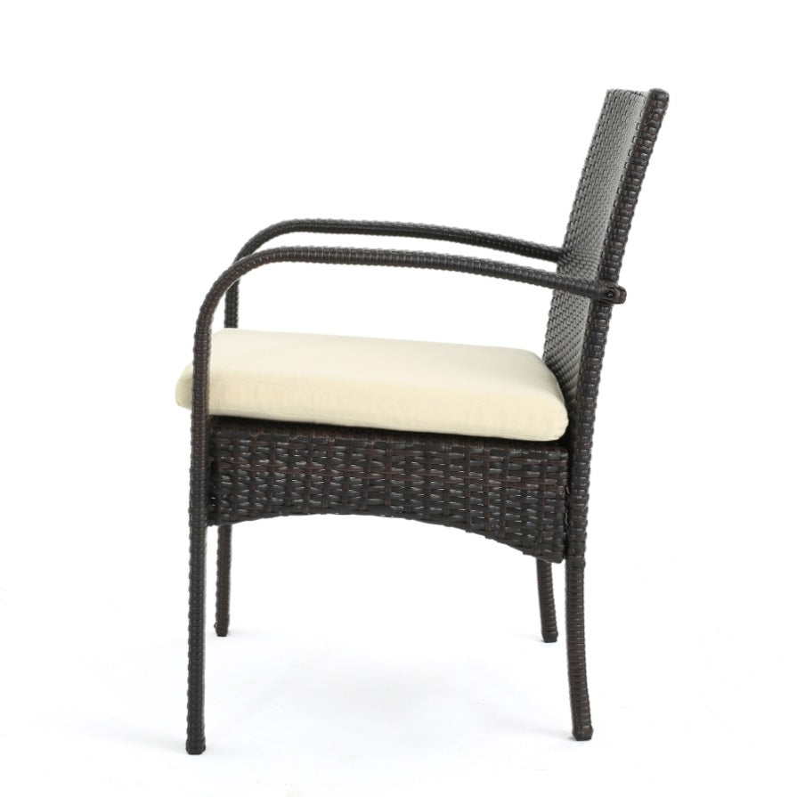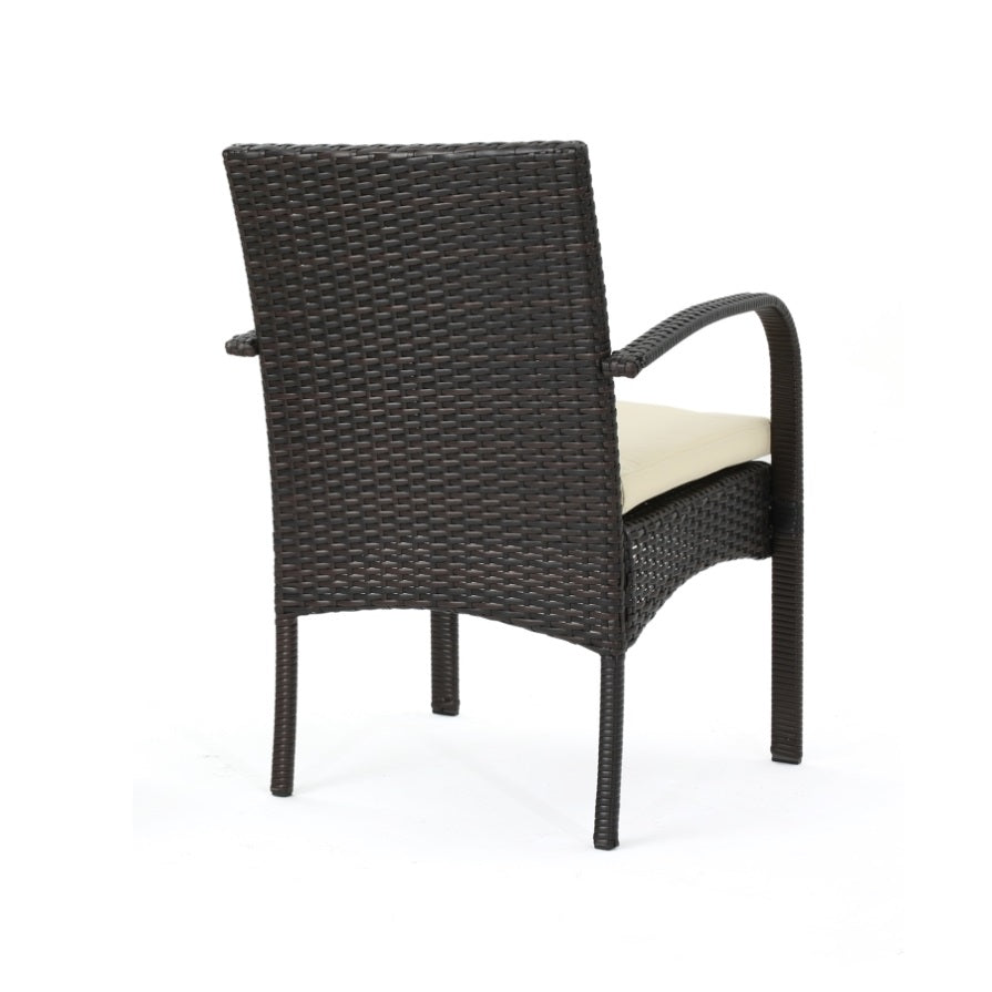 Enjoy the resin wicker material that makes this set stick out from a crowd. With a removable water resistant cushion included for each chair you will be able to adjust to each individual comfort need. Appreciate the finer things in life with this dining chair set.