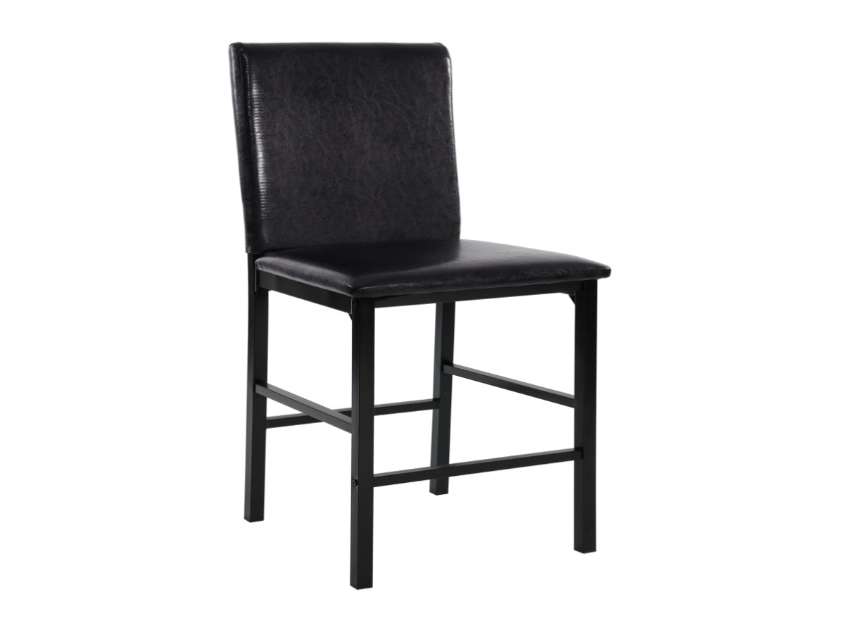 With a scale appropriate for any number of smaller dining spaces, these Collection will provide the look and style you want in your home. The transitional feel of the counter height chair comes from the black metal legs and the brown faux leather seat.