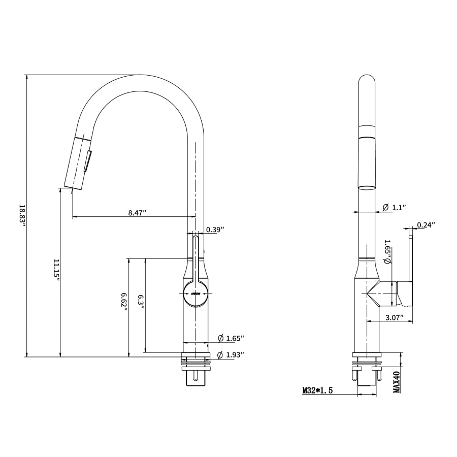 Durable and High-Quality Materials: Constructed with a brass and SS304 stainless steel body, a zinc alloy handle, and an SS304 spout, this pull-down kitchen faucet ensures durability and long-lasting performance.