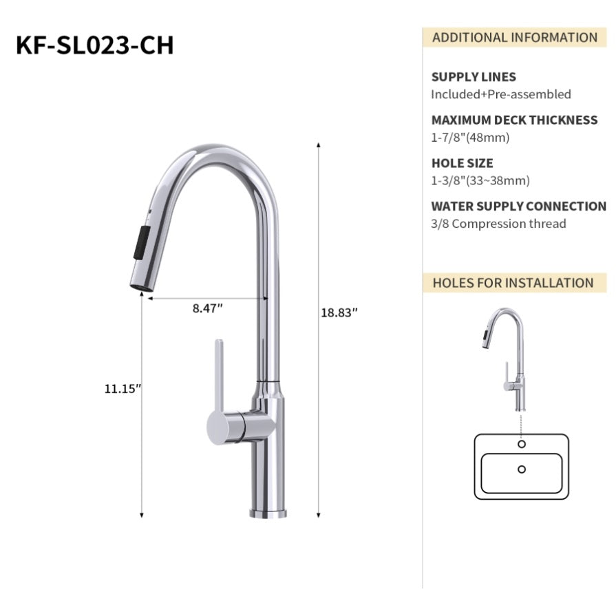 Spout Type: Pull-Down SpraySpout Reach: 8.47", Spout Height: 11.15"Durable and High-Quality Materials: Constructed with a brass and SS304 stainless steel body, a zinc alloy handle, and an SS304 spout, this pull-down kitchen faucet ensures durability and long-lasting performance.Convenient Pull-Out Design: Features an ABS pull-out head for flexible and efficient use,...