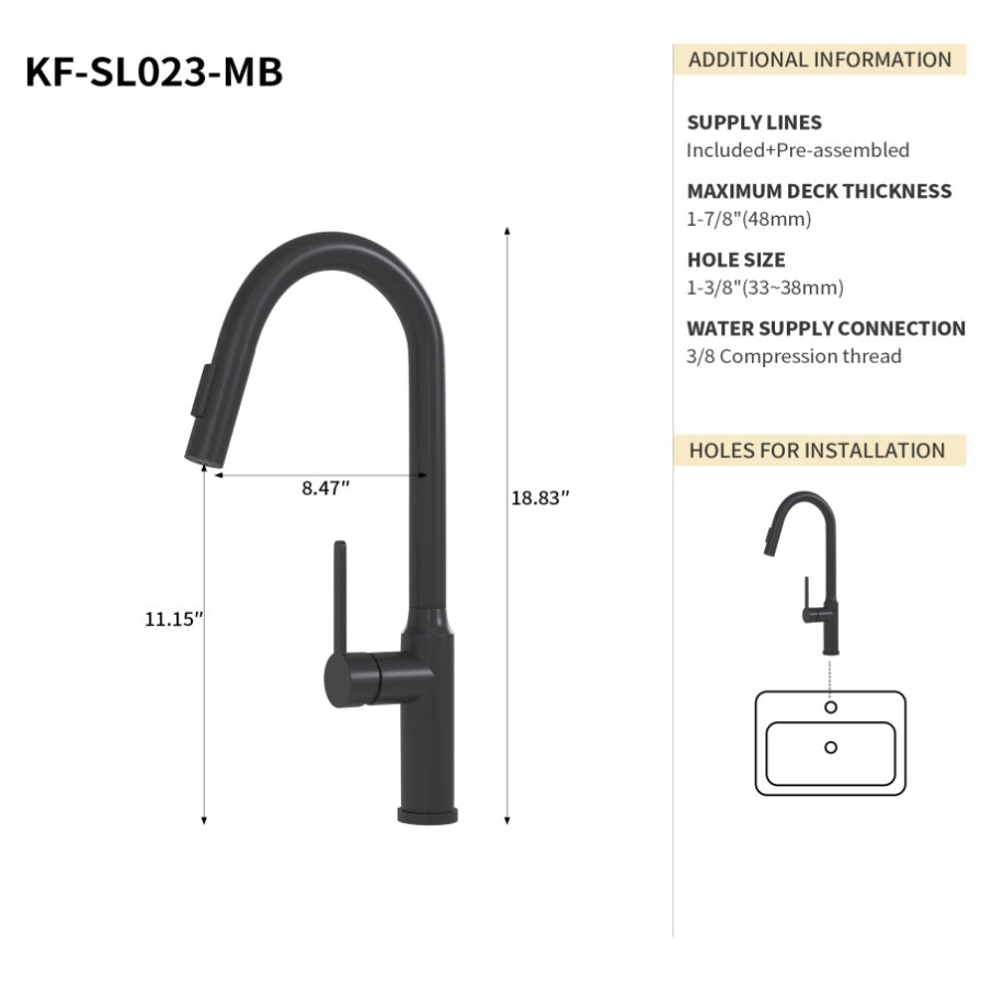 Spout Type: Pull-Down SpraySpout Reach: 8.47", Spout Height: 11.15"Durable and High-Quality Materials: Constructed with a brass and SS304 stainless steel body, a zinc alloy handle, and an SS304 spout, this pull-down kitchen faucet ensures durability and long-lasting performance.Convenient Pull-Out Design: Features an ABS pull-out head for flexible and efficient use,...