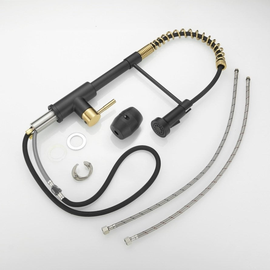 Commercial Black and Nickel Gold Faucet with Pull Out Sprayer, Single Handle Single Lever W1932P172336
