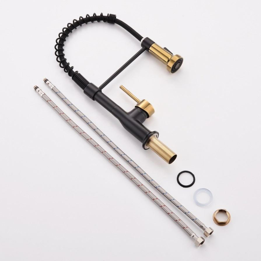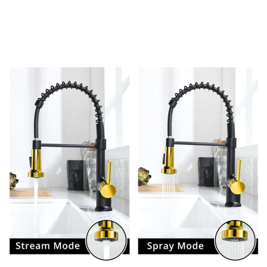 Kitchen Faucet with Pull Down SprayerBlack and Gold Kitchen Sink FaucetSingle Handle Kitchen Sink FaucetSpring Pull-down Kitchen Sink Faucet Commercial Kitchen Faucet with Pull Down Sprayer, Single Handle Single Lever Kitchen Faucet NO LEAKS: Lead-free brass is the best material for kitchen faucet, provide enhanced leak-tightness, Ceramic cartridge reduces leak...