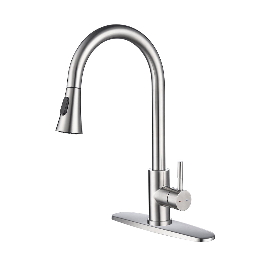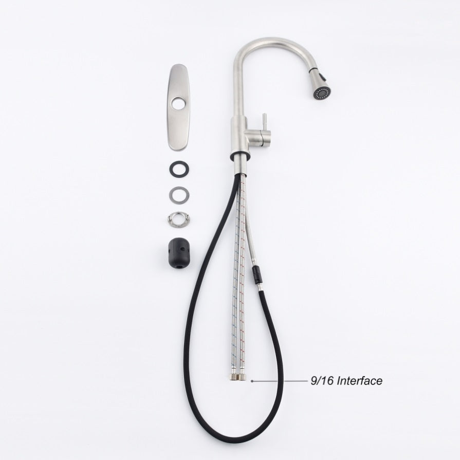 The pull-out spray head is designed to fit in a variety of sinks, and the high-arc nozzle rotates 360° to make your water use easier and more convenient.Single lever kitchen faucet allows easy control of water temperature and flow.The high-quality anti-corrosion and anti-rust surface treatment prevents dirt from adhering to...