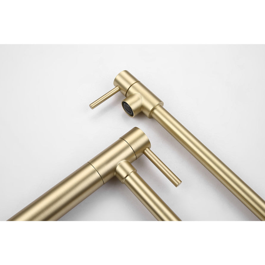 The pot filler faucet features a free-swivel arm design, making it easier to fill any pot on the stovetop and for easier cleaning. When not in use, the arms can be easily folded to save space.