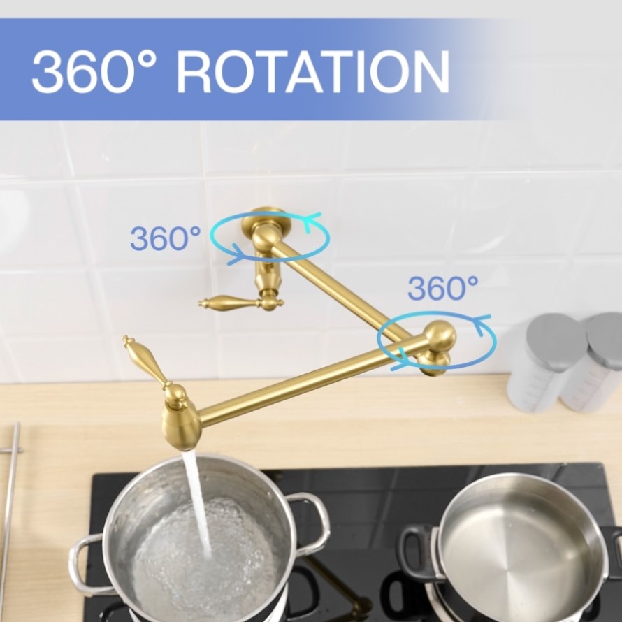 Brushed Gold Kitchen Pot Faucet with Double Joint Swing Arms
