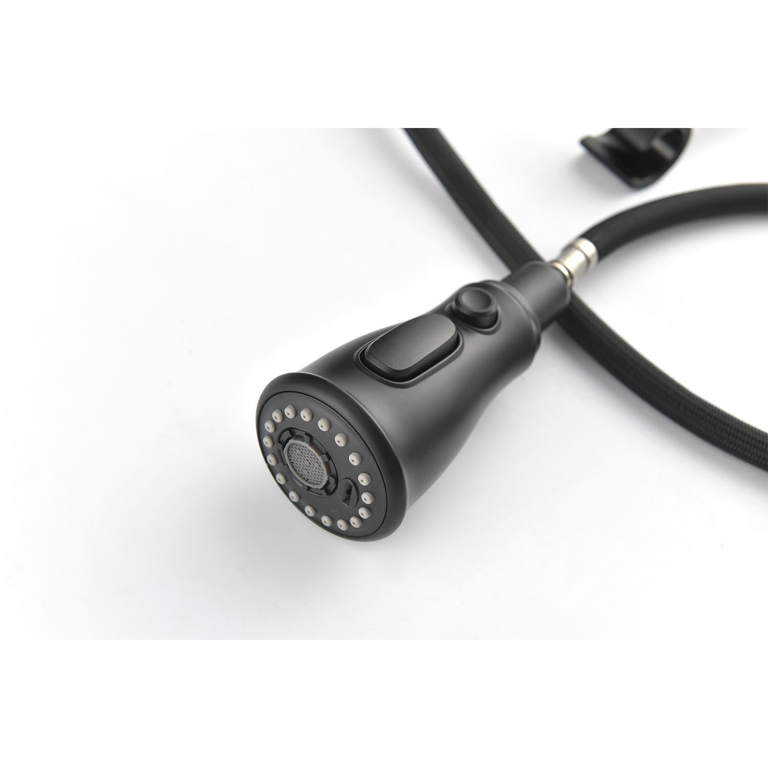 The pull-out spray head is designed to fit in a variety of sinks, and the high-arc nozzle rotates 360° to make your water use easier and more convenient.Three water output settings (stream, spray and blade) to meet your various needs, such as washing dishes, filling water or rinsing fruits and...