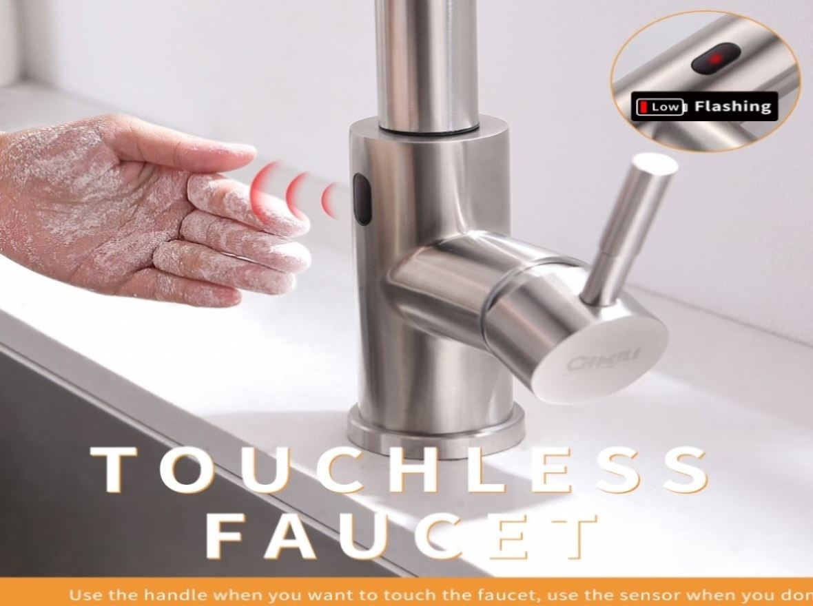 Toucless Kitchen FaucetAutomatic Smart Kitchen FaucetSingle Handle Motion Sensor Activated Kitchen Sink Faucet Touchless Kitchen Faucet,Hands Free Automatic Smart Kitchen Faucet Touchless with Pull Out Sprayer Motion Sensor Activated Kitchen Faucet: Bring your hand close to the motion sensor to activate the water flow. If you forget to turn off...