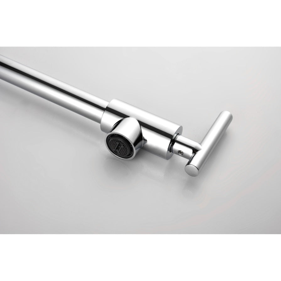 The pot filler faucet features a free-swivel arm design, making it easier to fill any pot on the stovetop and for easier cleaning. When not in use, the arms can be easily folded to save space.