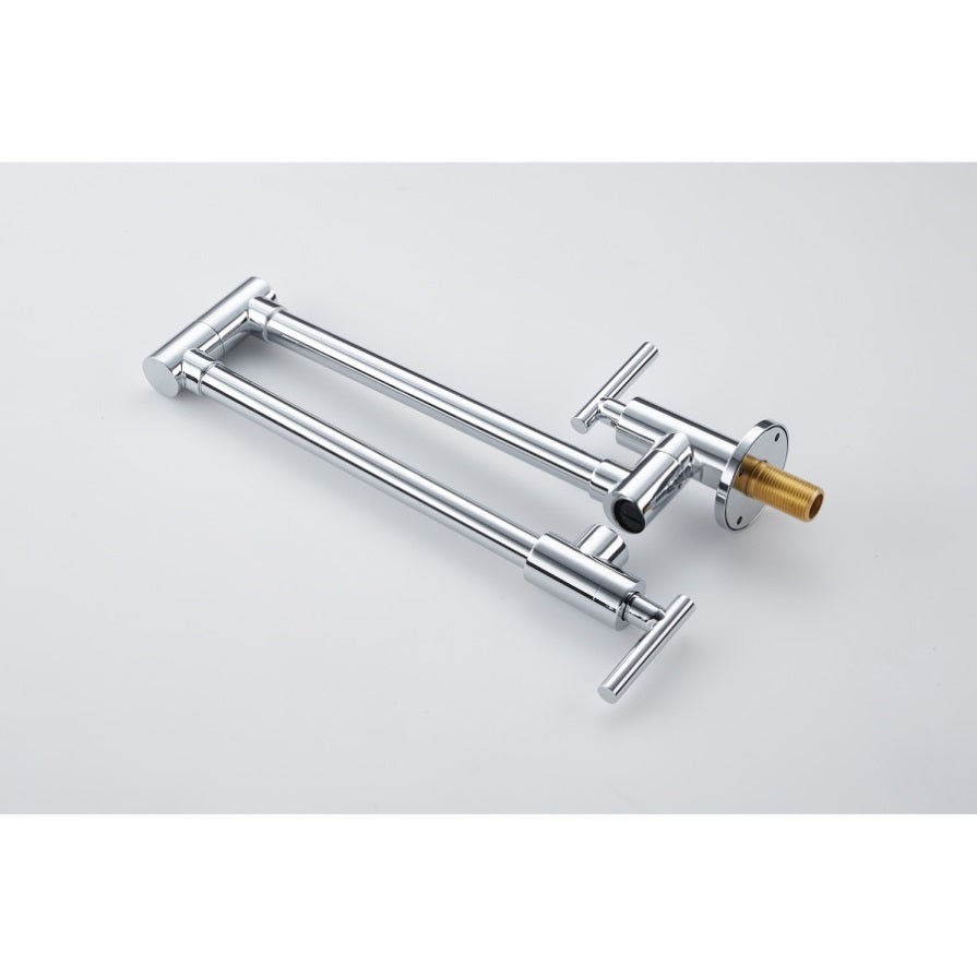 The pot filler faucet features a free-swivel arm design, making it easier to fill any pot on the stovetop and for easier cleaning. When not in use, the arms can be easily folded to save space.The double handles can well control the water flow, facilitate operation, and prevent dripping.A quality...