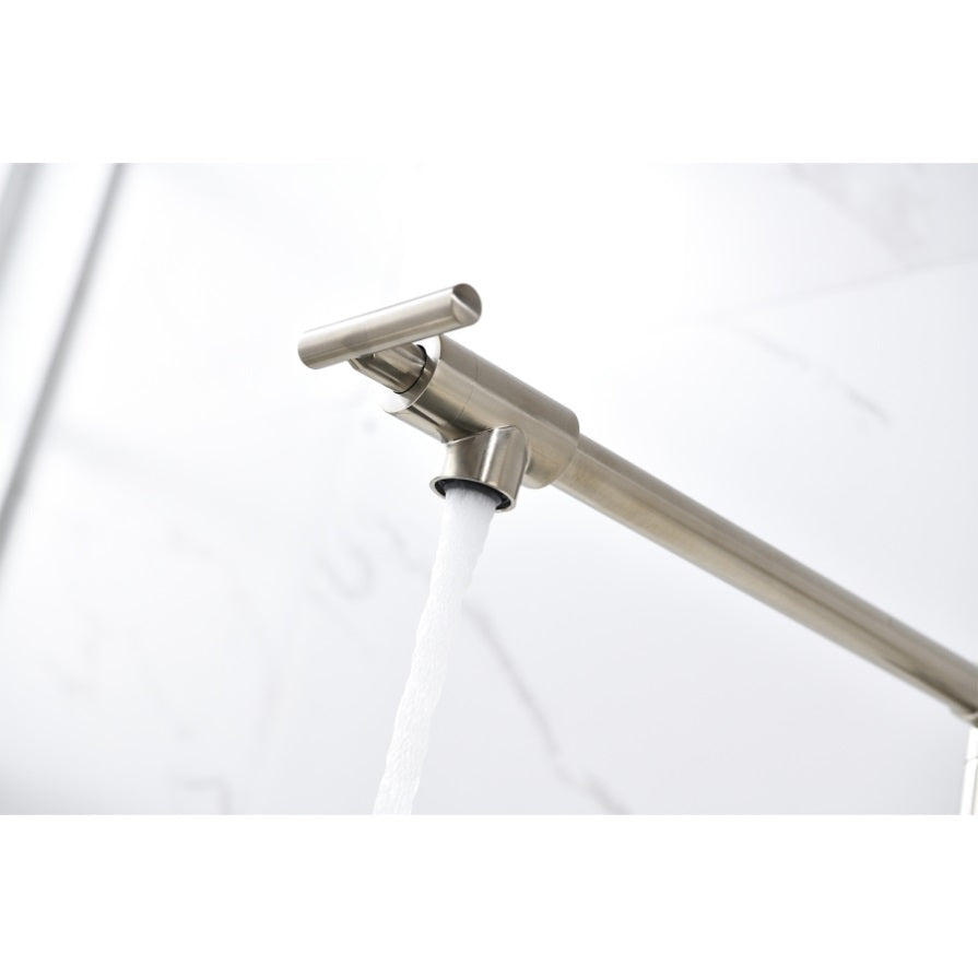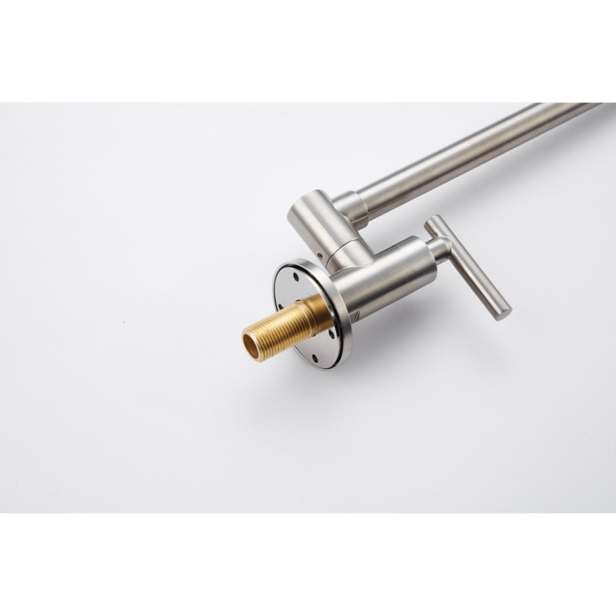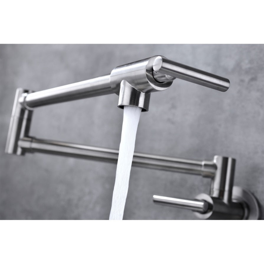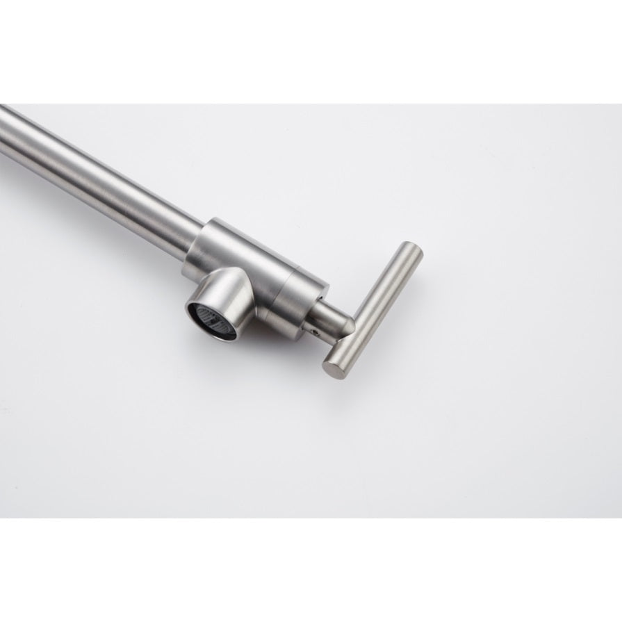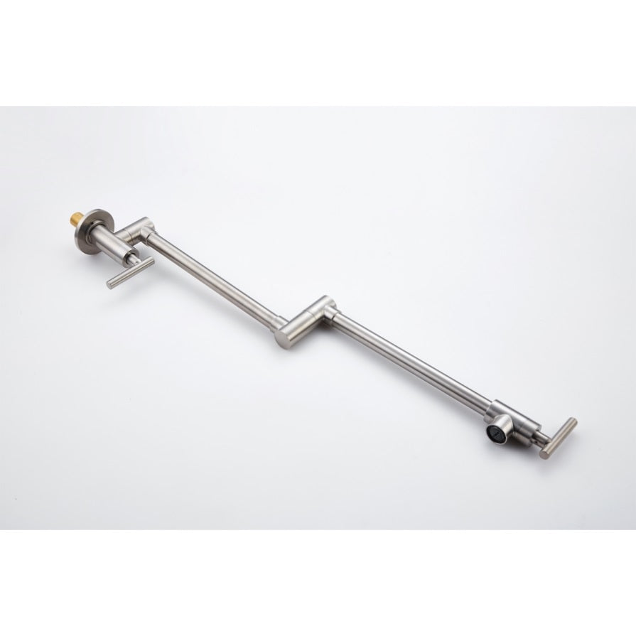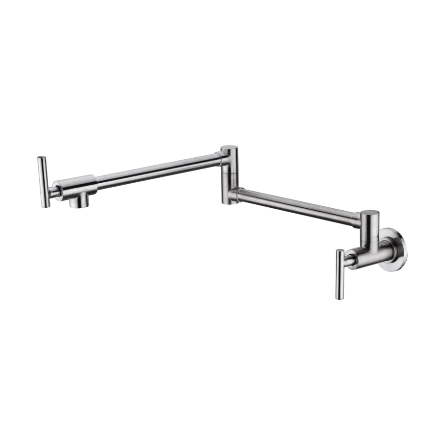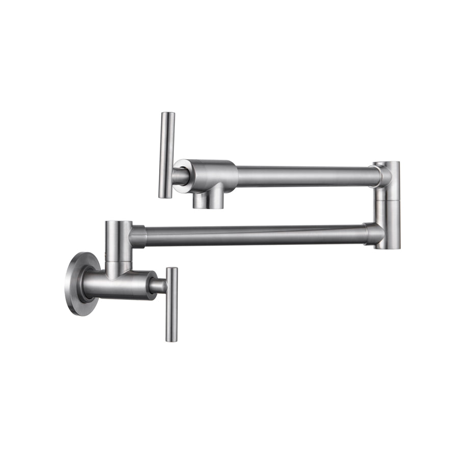 The pot filler faucet features a free-swivel arm design, making it easier to fill any pot on the stovetop and for easier cleaning. When not in use, the arms can be easily folded to save space.