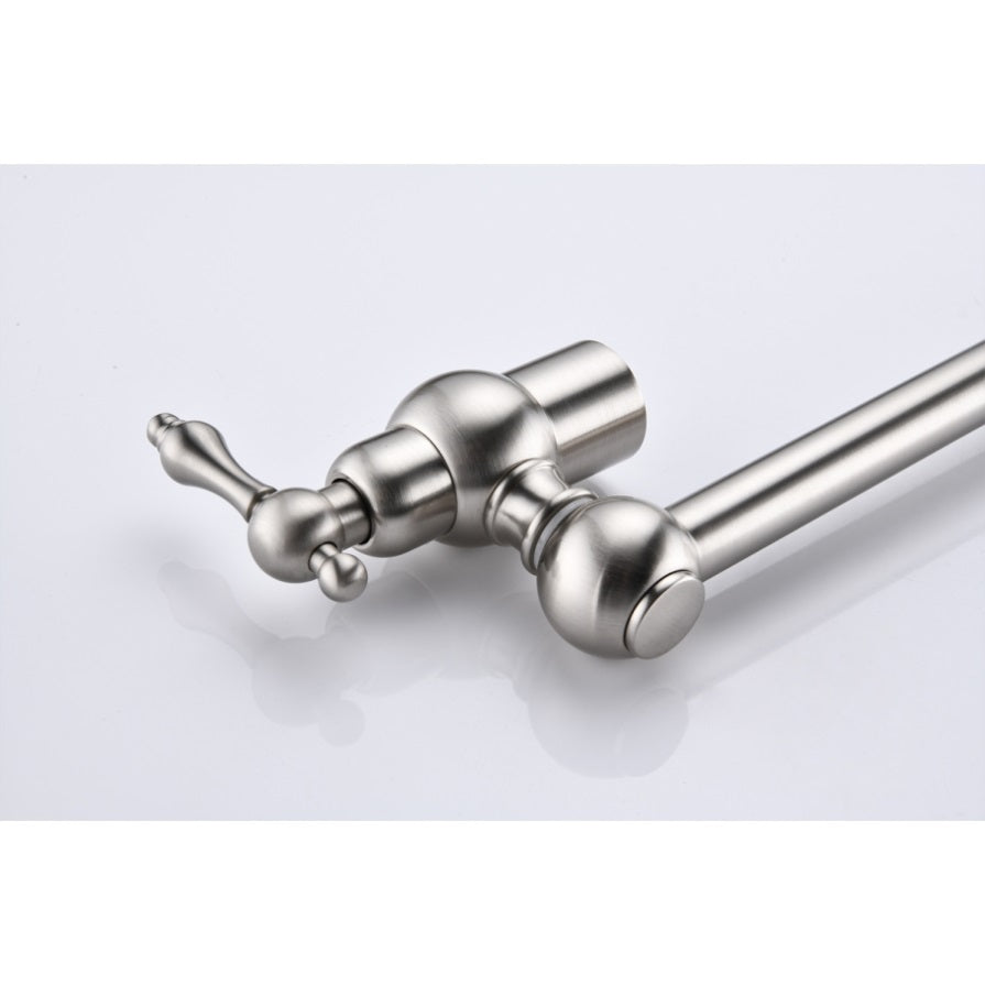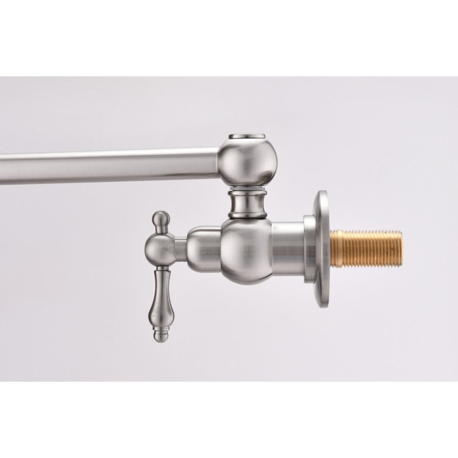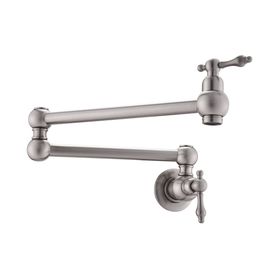 The pot filler faucet features a free-swivel arm design, making it easier to fill any pot on the stovetop and for easier cleaning. When not in use, the arms can be easily folded to save space.