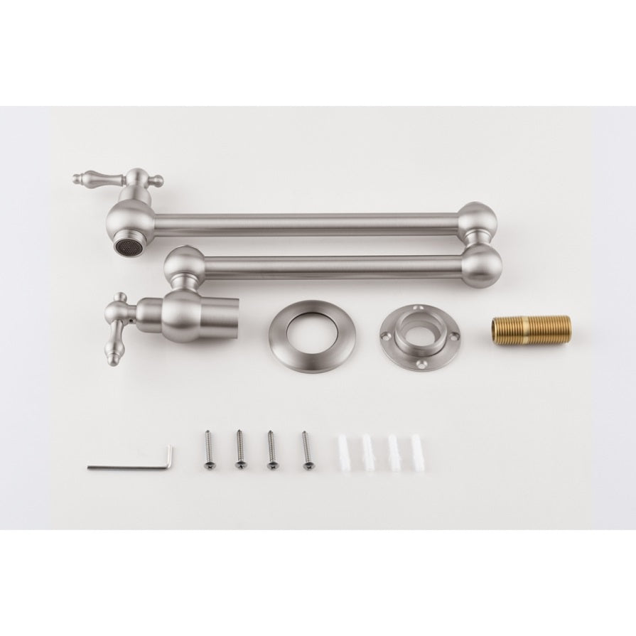 The pot filler faucet features a free-swivel arm design, making it easier to fill any pot on the stovetop and for easier cleaning. When not in use, the arms can be easily folded to save space.The double handles can well control the water flow, facilitate operation, and prevent dripping.A quality...