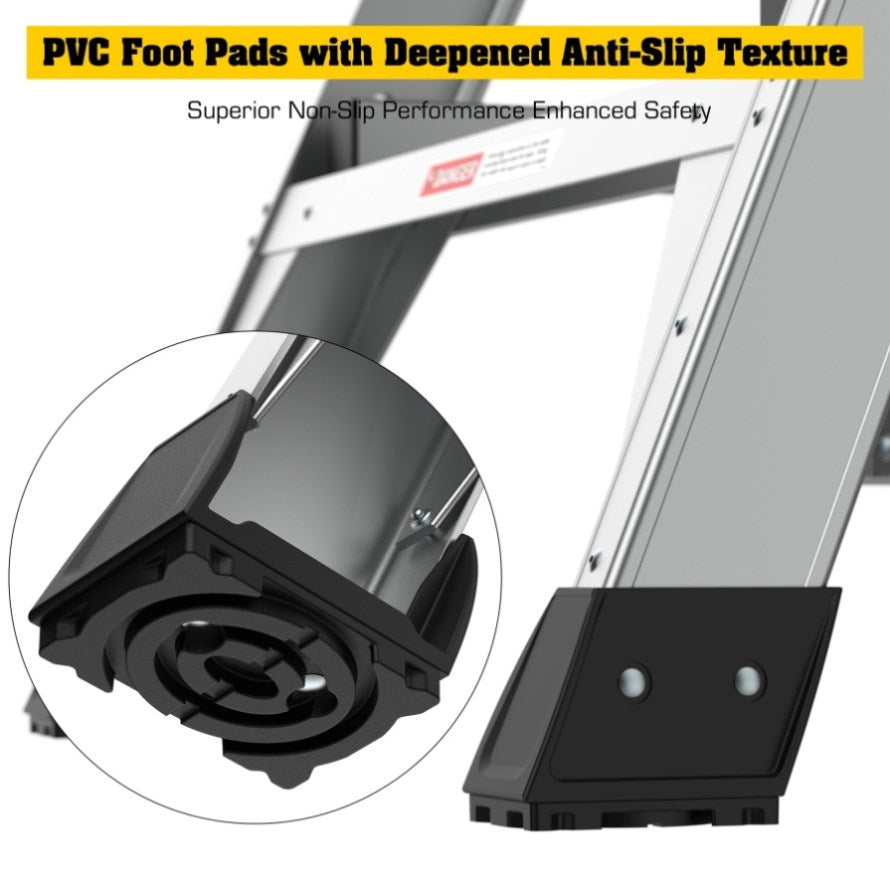 Heavy-Duty Aluminum Frame with Precision WeldingCrafted from high-quality aluminum and reinforced with seamless welding, this ladder delivers exceptional strength-to-weight ratio. Supports up to 375 lbs while remaining 40% lighter than steel alternatives.