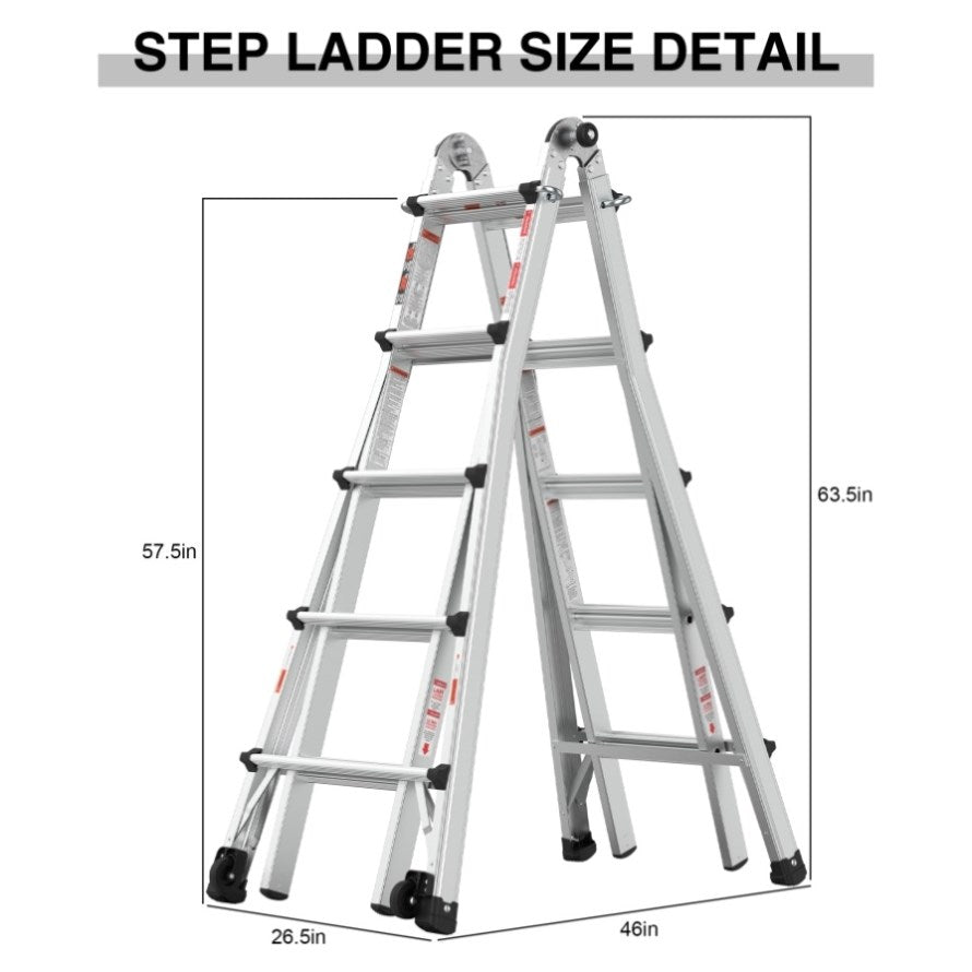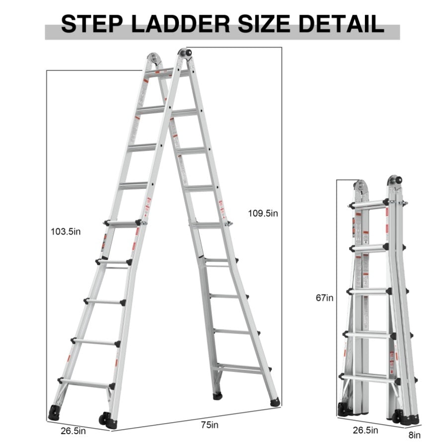 Versatile and adaptable: The multi-position ladder effortlessly transforms into various configurations, including A-frame, extension, trestle-and-plank, 90-degree angle, and staircase. It provides flexibility for different tasks and working environments.