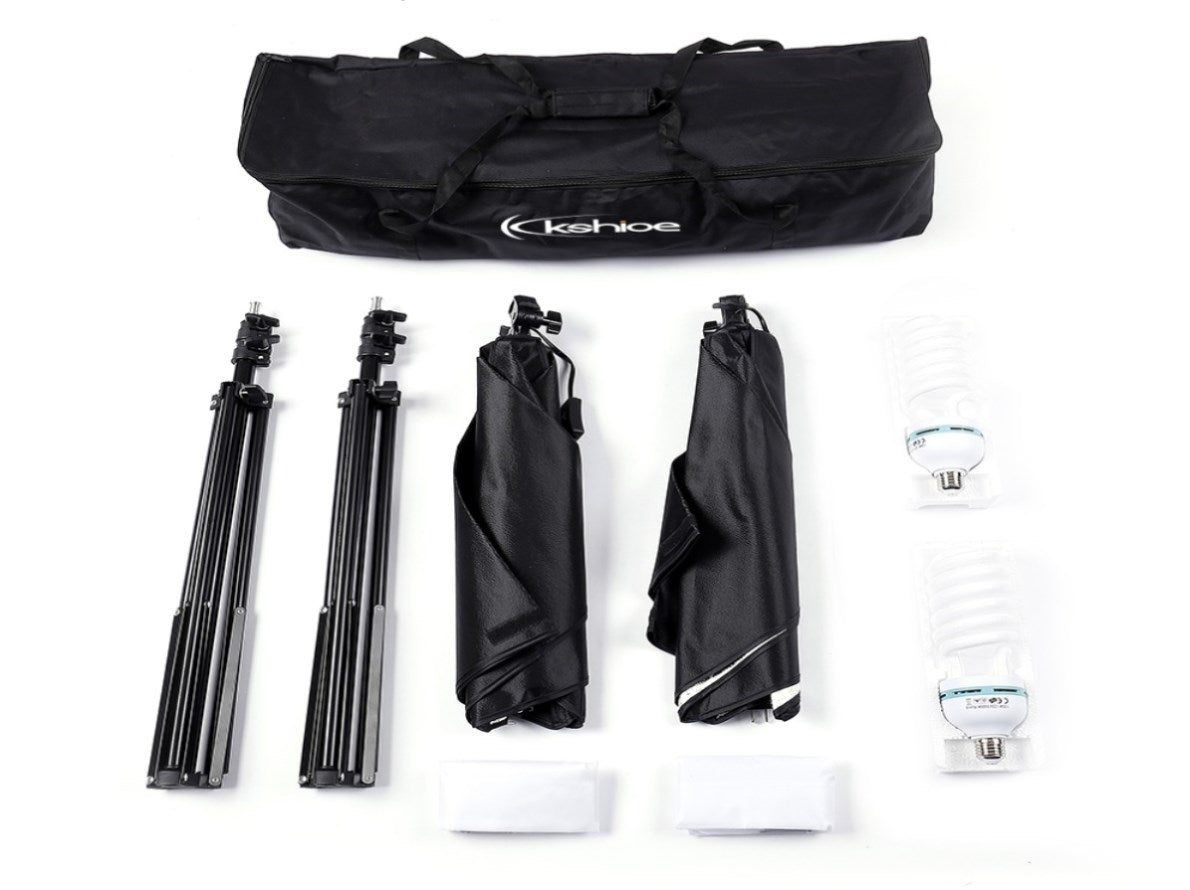 You can't miss this Kshioe 135W Bulb 5070 Single Head Soft Light Box Two Lights Set. It will meet all you need. You can do fashion shots, video filming when the studio space is limited, also can pack them all up as a travel set. Pure white daylight, it is just made for photography. Made of high quality material, it is durable and sturdy for you to use. It is easy to collect all the accessories and can be taken outside conveniently. Now, take it back home!