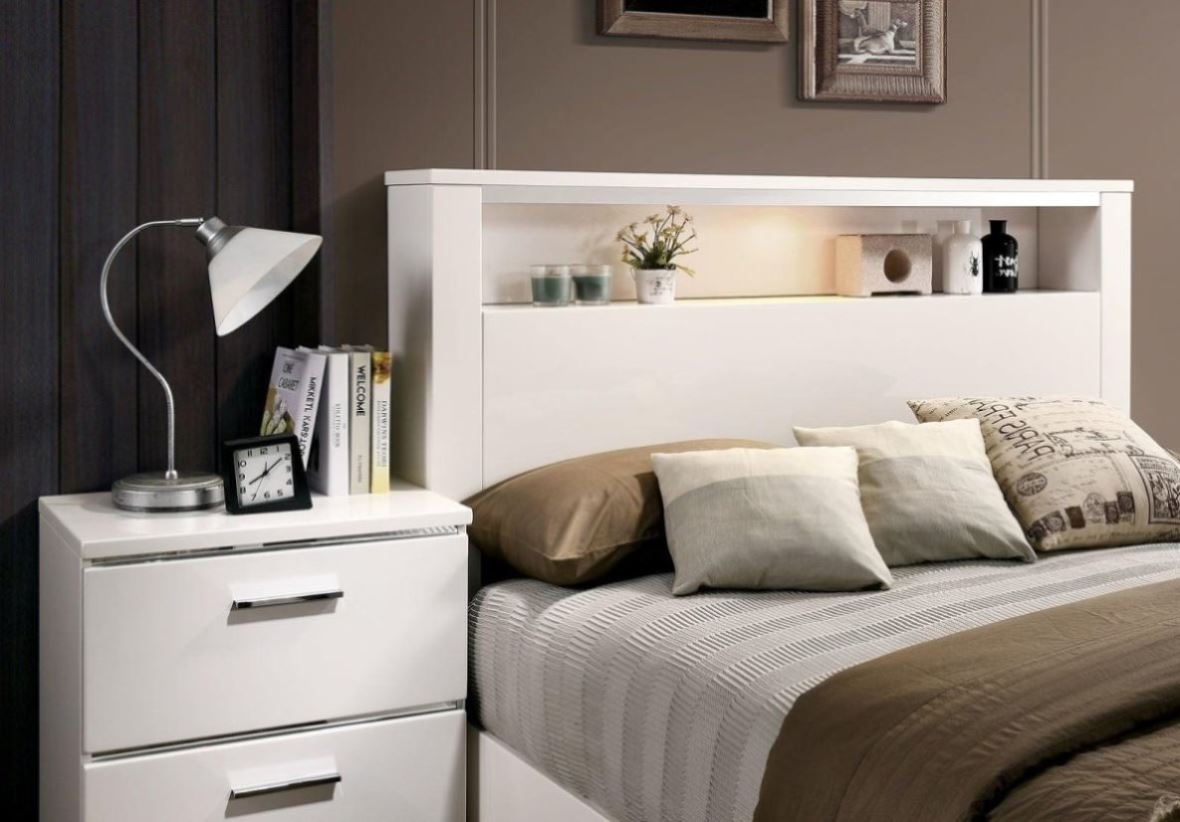 Contemporary StyleWhite ColorSolid Wood, Wood Veneer, OthersHigh Gloss Lacquer CoatingUSB Charger in Night StandChrome Handles and FeetStorage Drawers Bedside TableMetalFelt-lined Top DrawersListing Includes :- 1x Nightstand Only. Product Description Product Description:- This night stand brings a modern feel with a splash of alluring chrome accents that help it pop out....