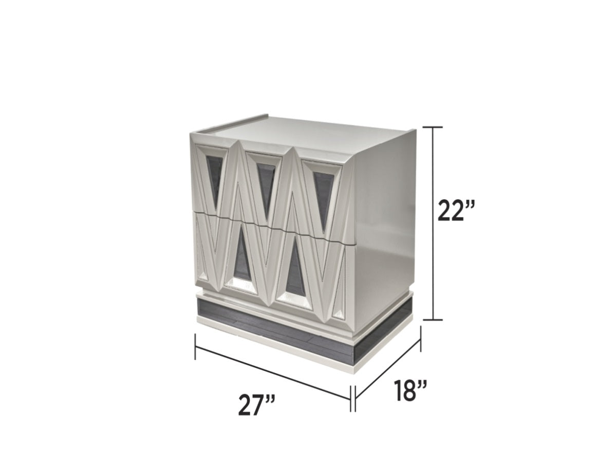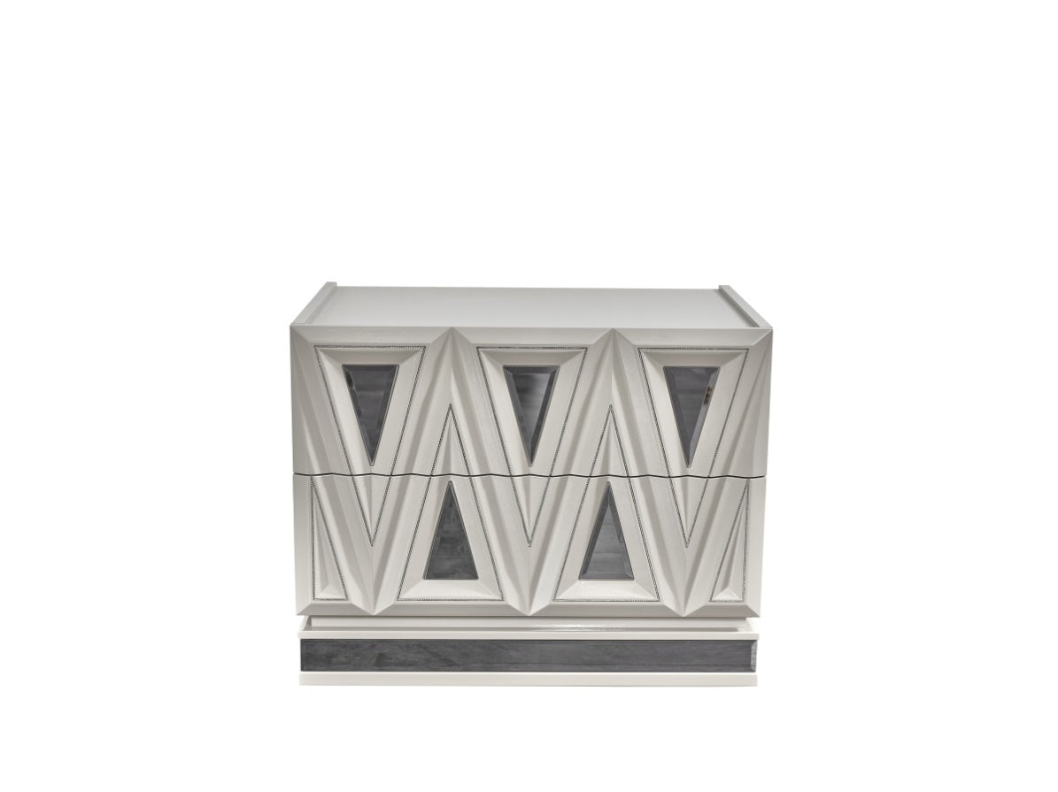 Constructed from poplar wood and MDF, upholstered in plush velvet fabric.Diamond-shaped drawer fronts with crystal accents for a unique and sophisticated touch.Soft-closing drawers for a gentle and quiet closure.High gloss lacquer finish for a contemporary look. Lavita 2-Drawer Nightstand: Crafted from a combination of poplar wood and MDF, this 2-drawer...