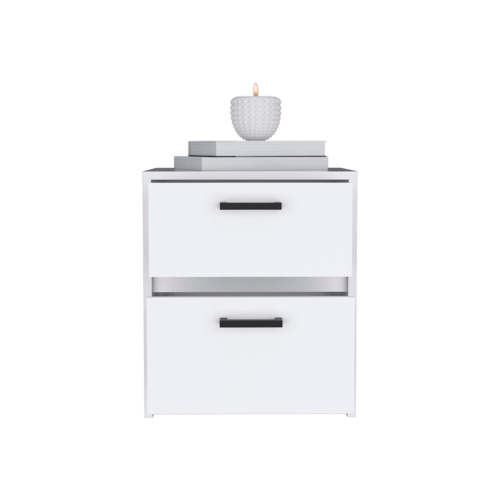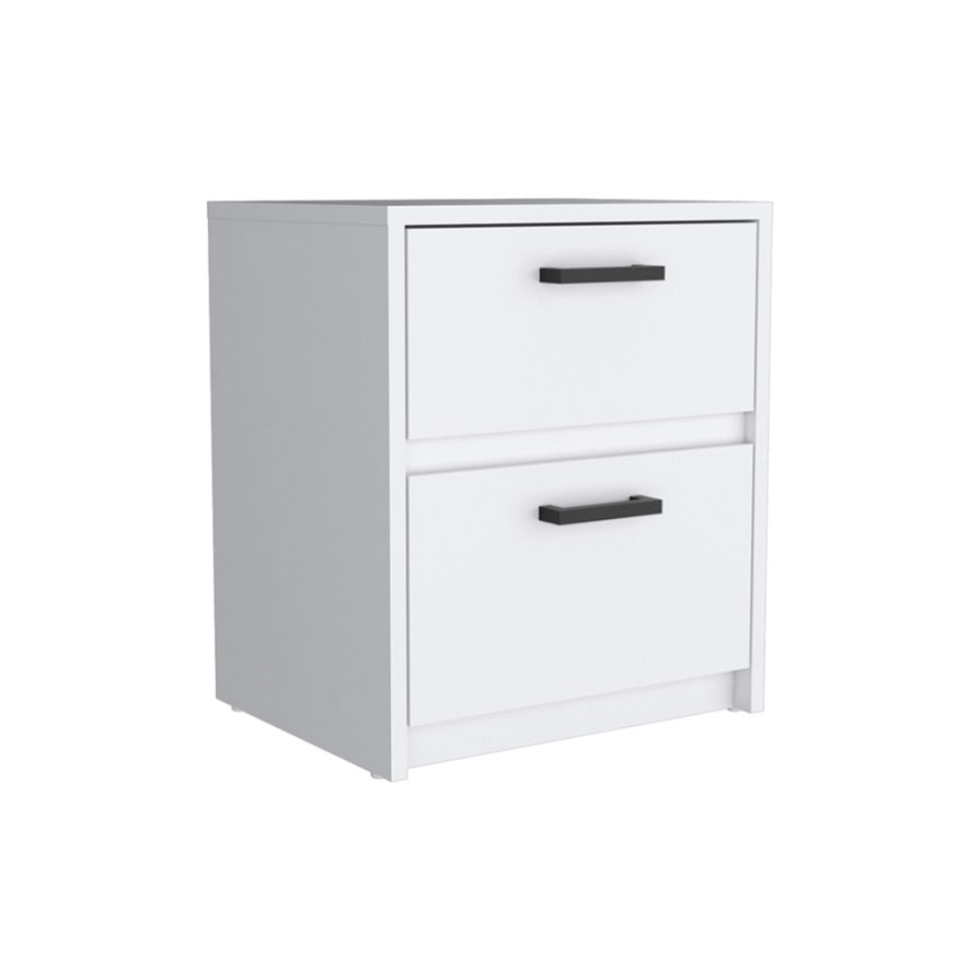 Nightstand Chequered, Two Drawes, White Finish B092123118