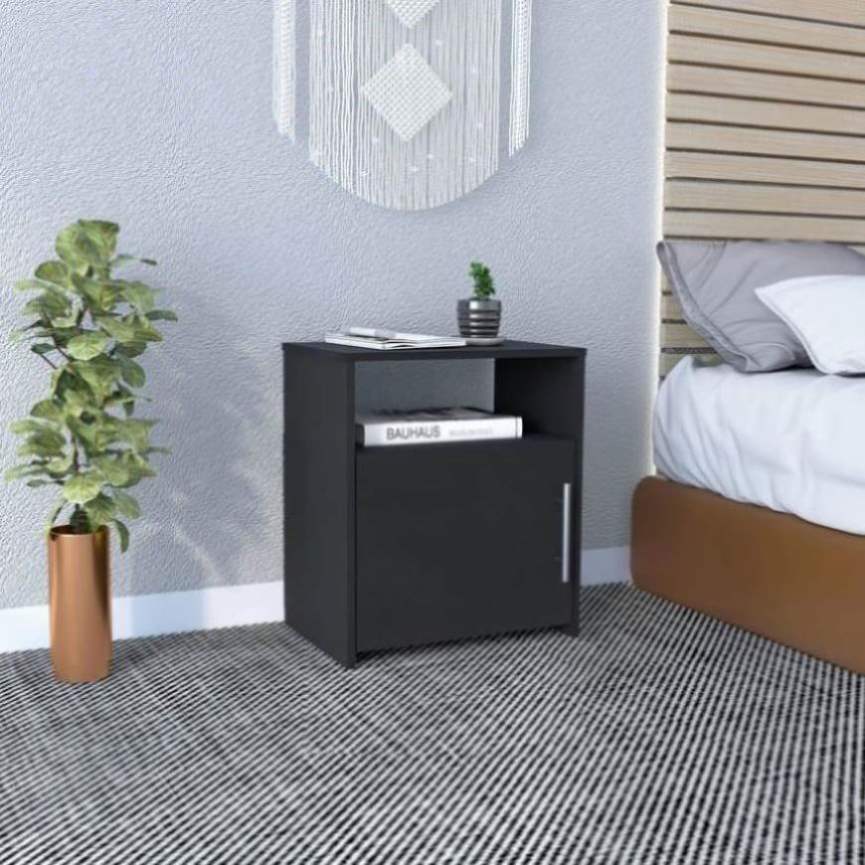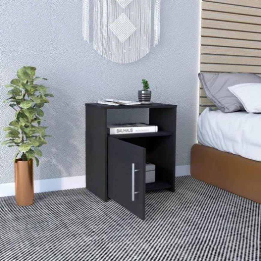 Nightstand, Single Door Cabinet, Metal Handle, One Shelf, Superior Top, Black B097120603