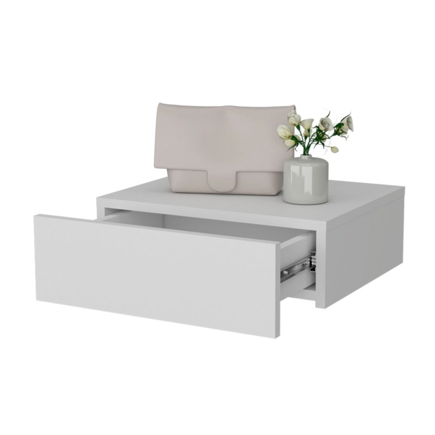 Experience the sleek, space-saving solution of the floating nightstand's wall-mounted design, enhancing room aesthetics while providing functionalityIts robust top surface is ideal for essential items like lamps, books, or alarm clocks, while the spacious drawer offers ample storage dimensions for your personal belongingsCrafted from sturdy manufactured wood, this nightstand ensures...