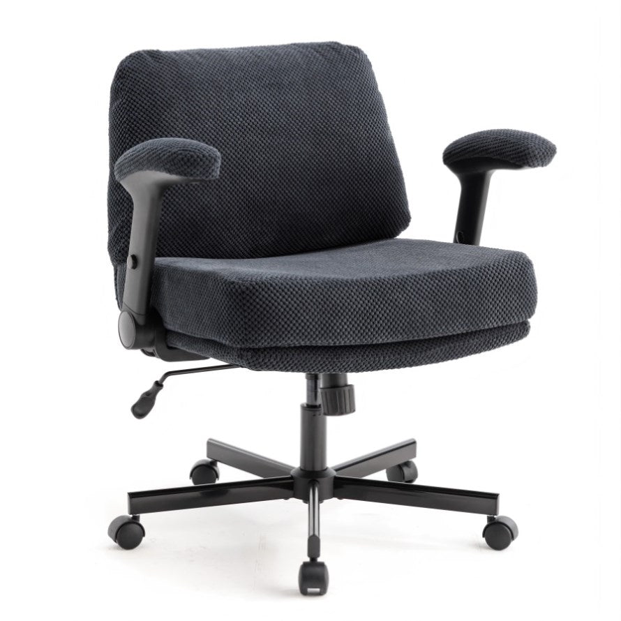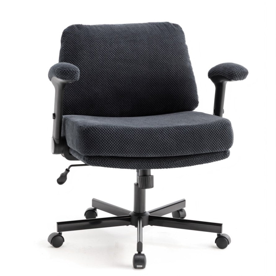 Chair with Wheels and Flip Arms-Comfy Fabric Cross Legged Office Chair with Thick Cushion&Wide Seat, 15752101