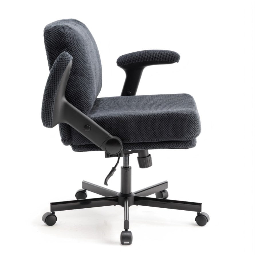 - Comfy Texture Meets Modern Style: Wrapped in soft, skin-friendly grainy-textured fabric, this swivel desk chair brings a warm, inviting vibe to any room. The plush seat and backrest offer both comfort and style—making it a perfect addition to apartments, home offices, dorms, or any creative space that could use a cozy, modern upgrade. The chair with arms delivers the perfect mix of cloud-like comfort, supportive cushioning, and modern style