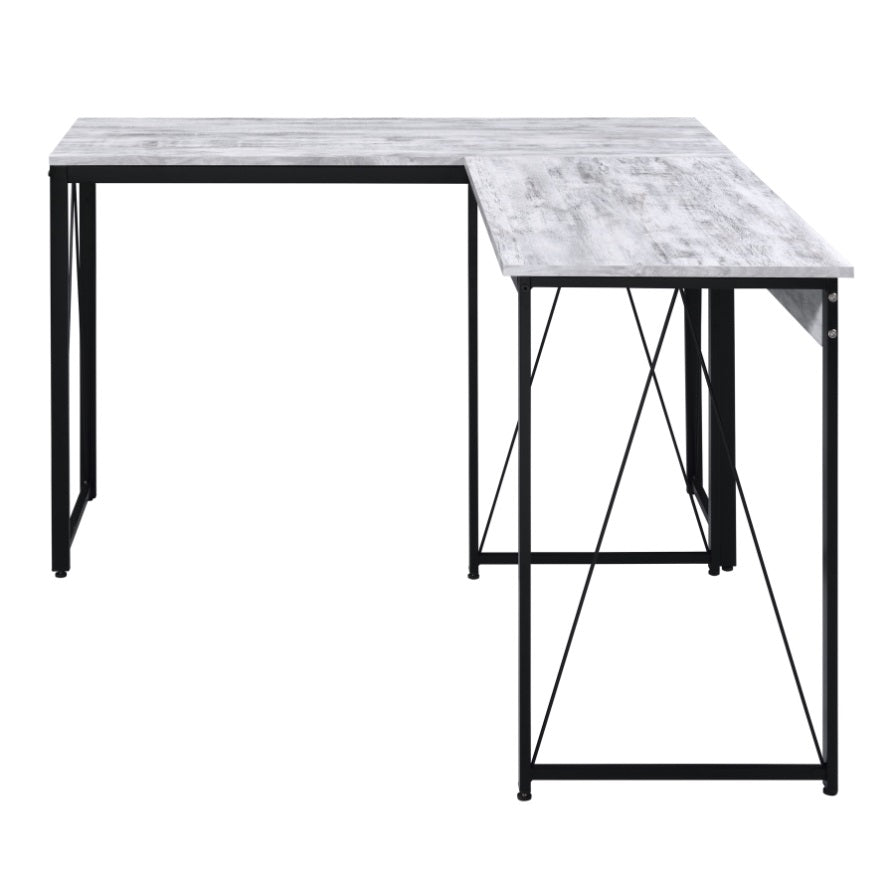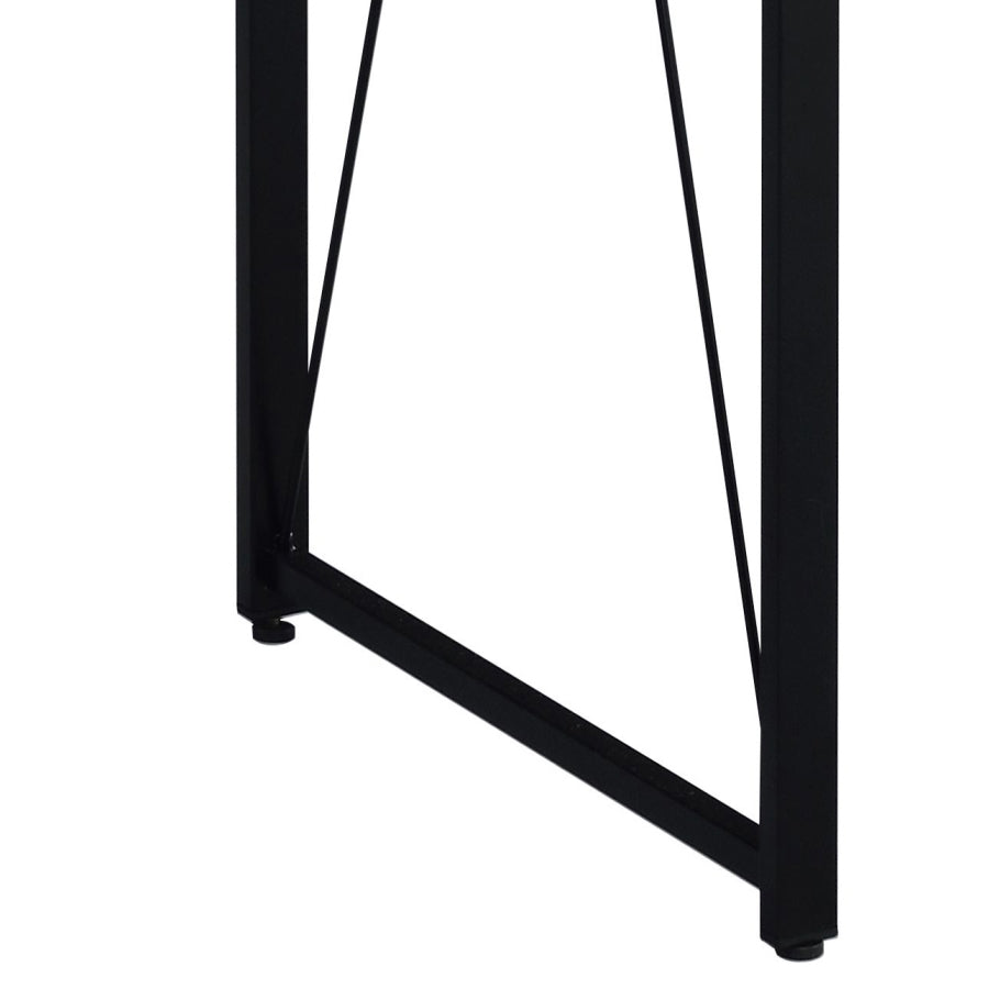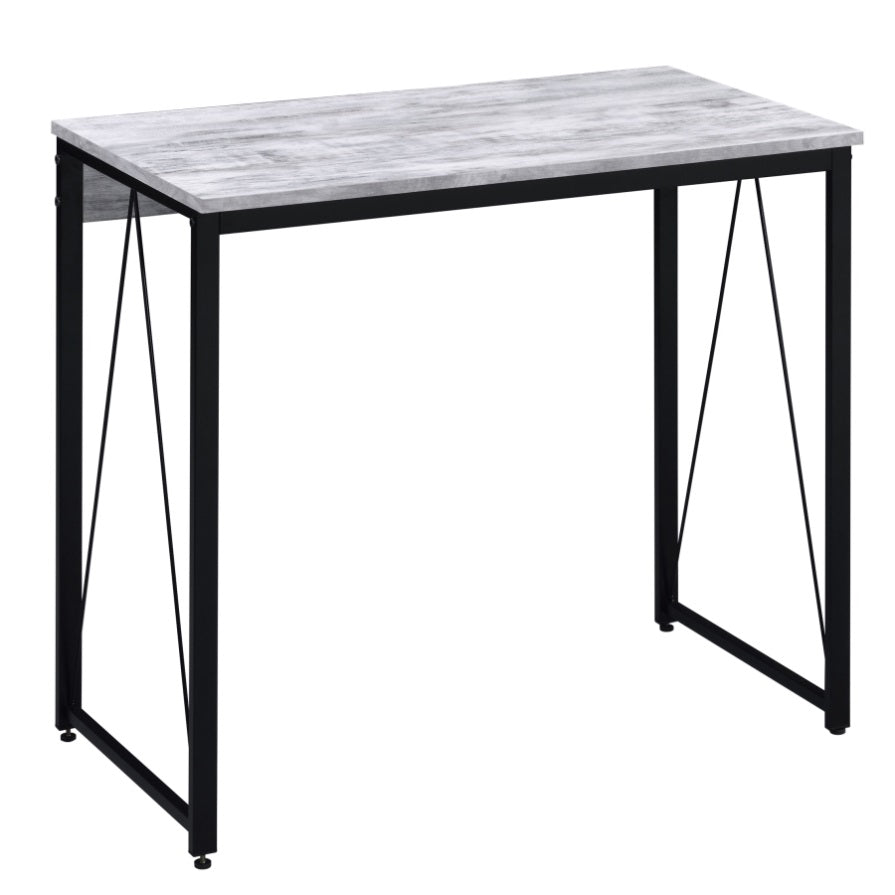 Elevate your workspace with this rustic industrial writing desk, seamlessly blending vintage charm with modern functionality for a unique ambiance. Crafted with a wooden tabletop and back apron, it provides a sturdy surface for various tasks, complemented by a distinctive reverse "v" shaped support for both visual appeal and structural integrity.