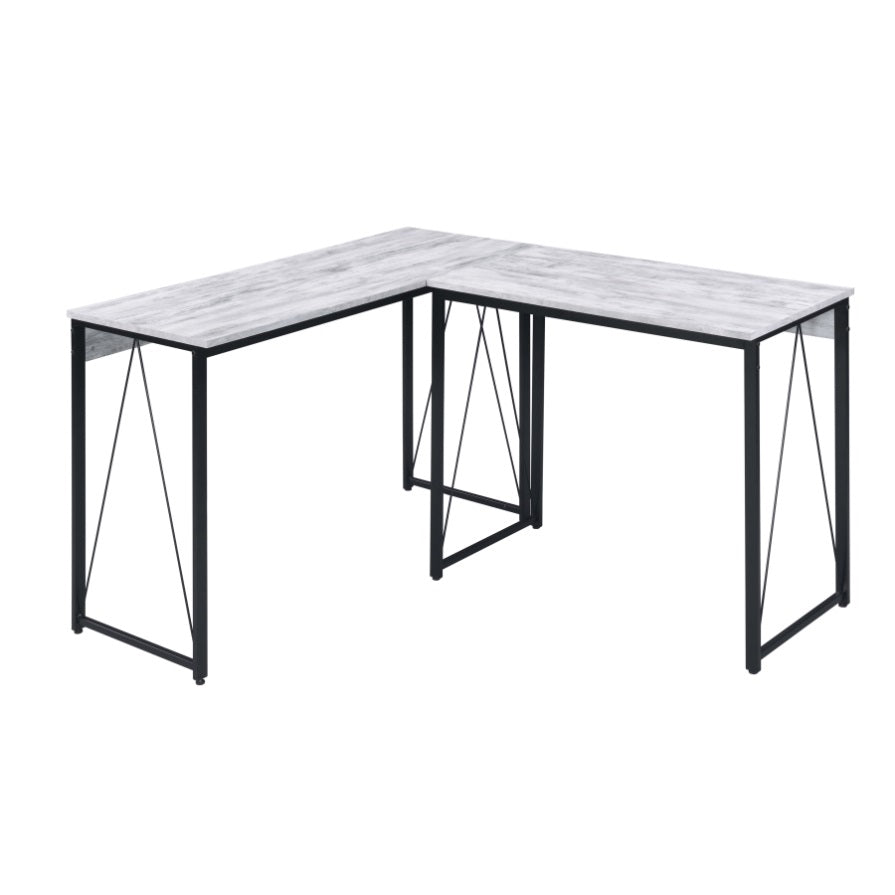 The desk stands out with its distinctive reverse "V" shaped support, adding visual interest and reinforcing strength and stability