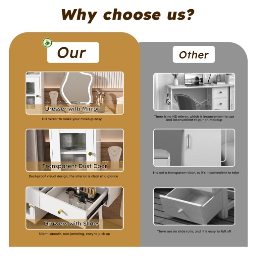 Gift Choice:This vanity set would be a perfect addition to your room, perfect for bedroom, dressing room or living room. Whether it's birthday, valentine's day, mother's day, or christmas, this charming dressing table is an excellent gift for your girlfriend, wife, mother, and daughter.
