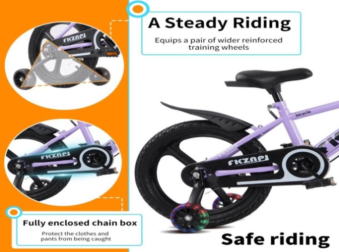 FKZNPJ Kids Bike 16 Inch High Carbon Steel Frame, Magnesium Alloy Wheels, Training Wheels with W2921P368557