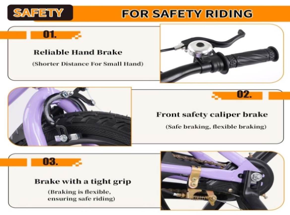 Built for daily adventures, this kids bicycle uses a high-carbon steel frame for stability and safety, perfect for boys and girls ages 3-9, from park rides to school trips.