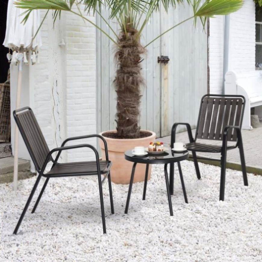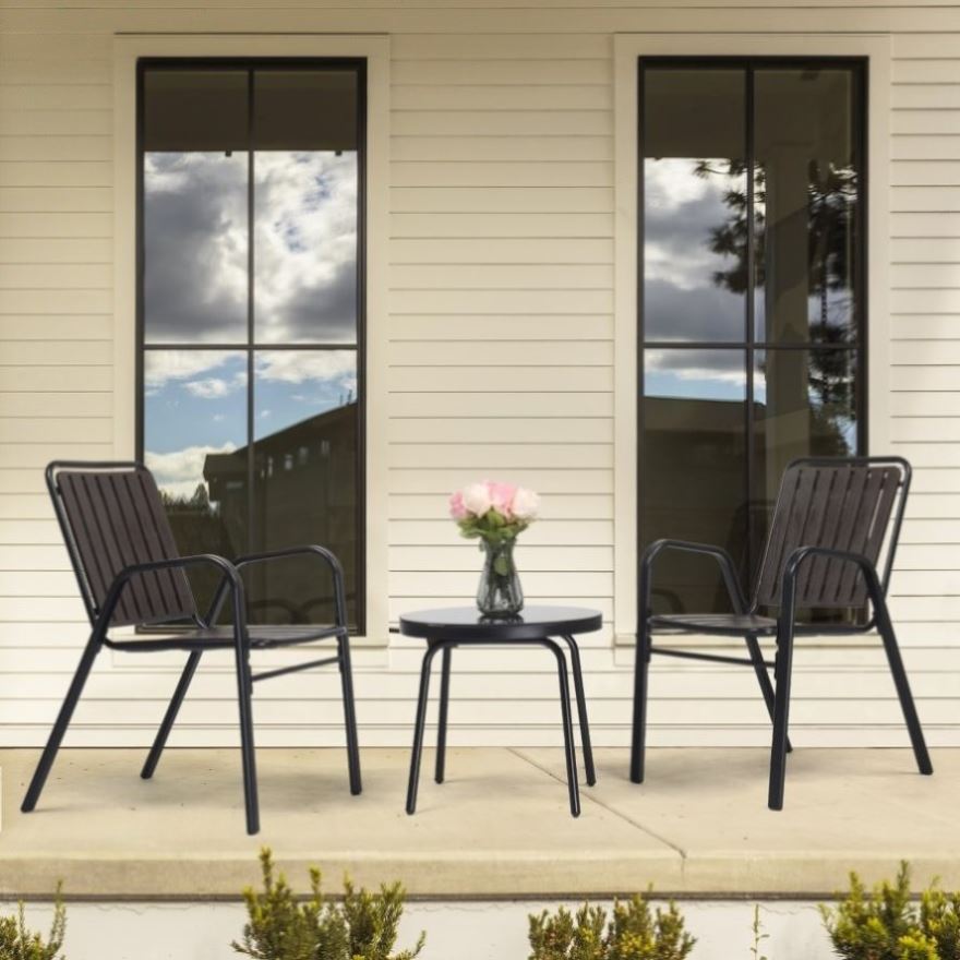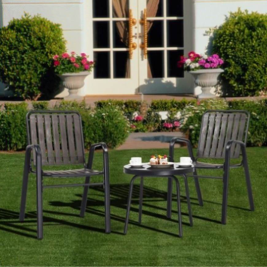 Transform your outdoor space into a captivating oasis with our 3-Piece Bistro Table Set. Immerse yourself in the allure and sophistication of this stunning patio furniture ensemble. Crafted with meticulous attention to detail, this bistro set exudes timeless elegance and adds a touch of luxury to any outdoor setting. The sleek design and intricate detailing make it a true showstopper, while the stackable chairs offer a practical solution for effortless storage and versatility. Whether you're hosting intimate gatherings or simply enjoying some quiet time, this bistro set creates an inviting ambiance that will leave your guests in awe.