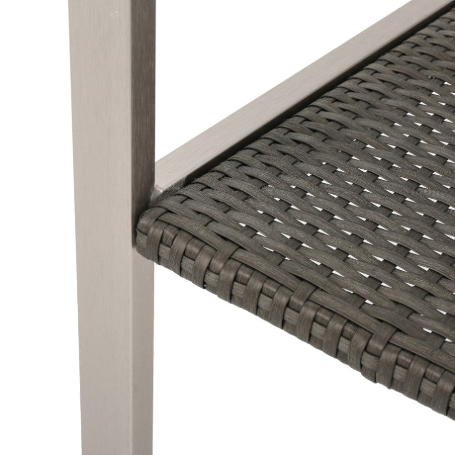 The frame of the chairs is made of rust-resistant aluminum, ensuring a longer lifespan. Meanwhile, the seating is designed with a long-lasting woven finish, and its intricate details enable it to seamlessly blend in with your outdoor decor.