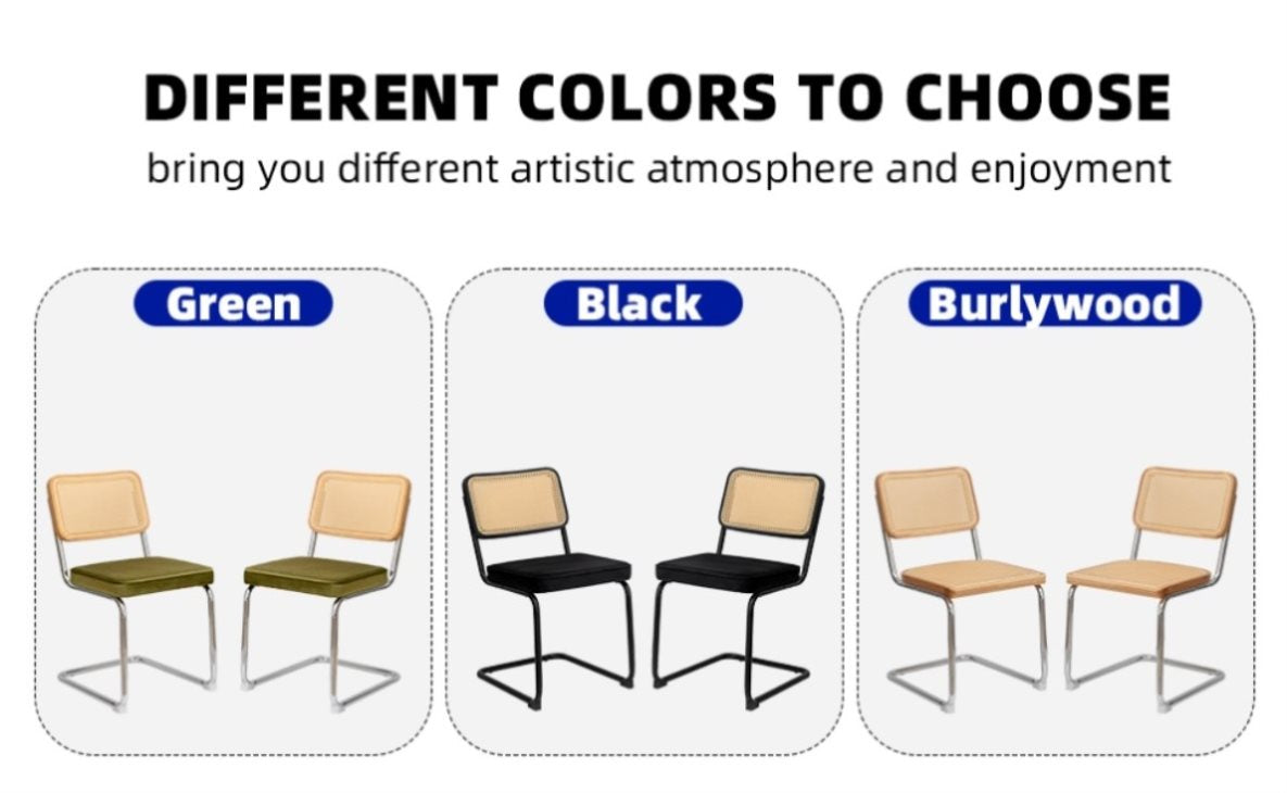 Dining Chairs Set of 2, Velvet Rattan Side Accent Chairs with Chrome Legs, Modern Mid Century Breuer W2105P177179