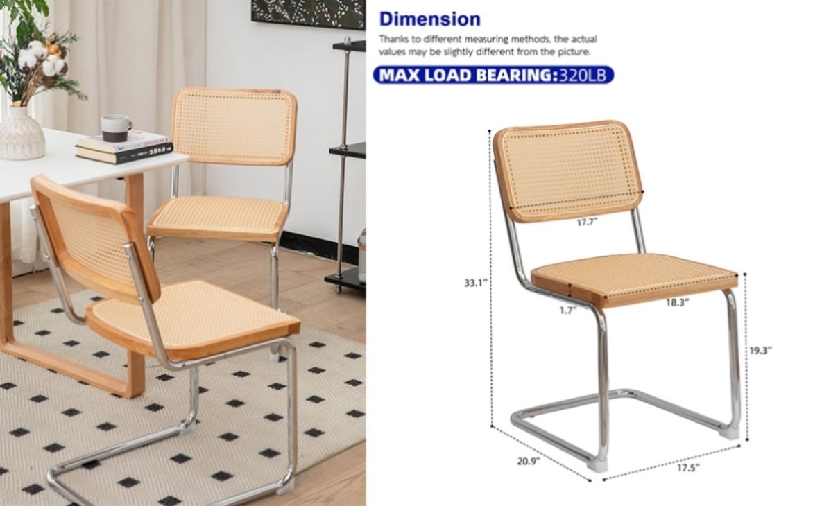 MATERIAL: The graceful backrest of this unique dining chair is artfully hand-woven with stained rattan. The high-quality rattan seat is filled with high-density sponge, which is both permeable and comfortable. The breathable mesh rattan backrest helps to ventilate rooms and dissipate heat, maintaining a cool and dry sitting feeling
