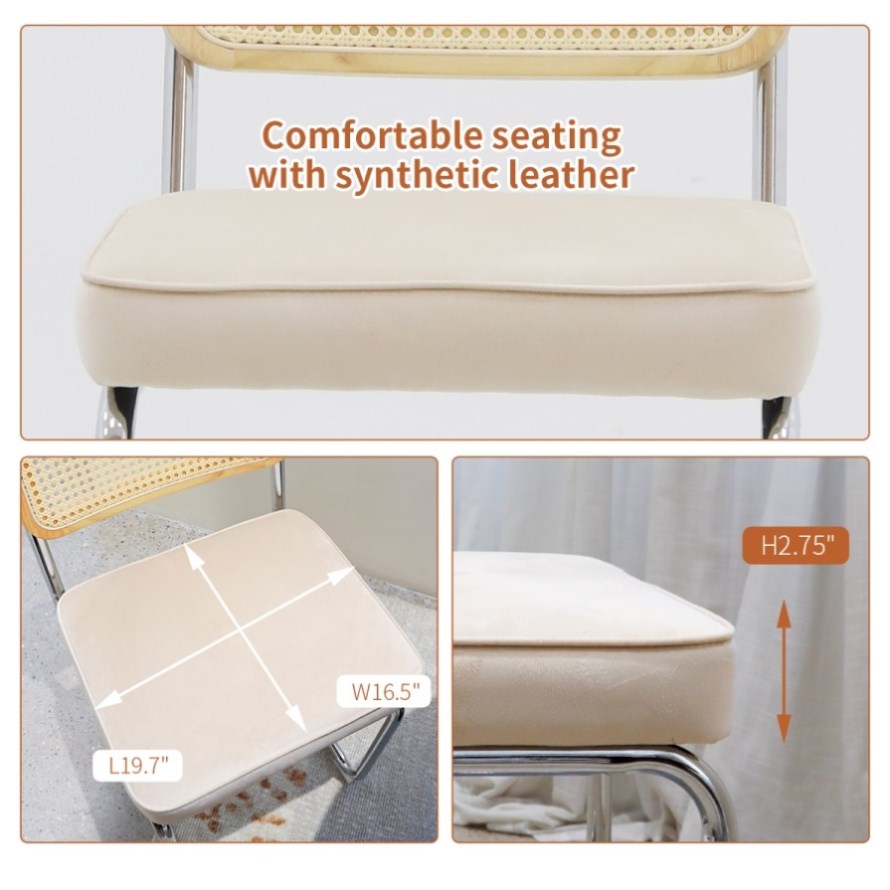 Dining Chairs Set of 2, Velvet Rattan Side Accent Chairs with Chrome Legs, Modern Mid Century Breuer W2105P327593
