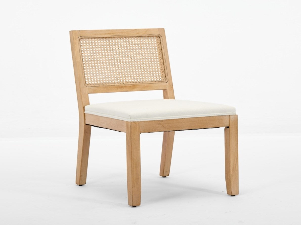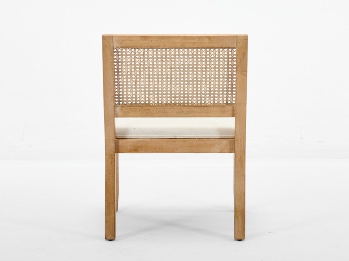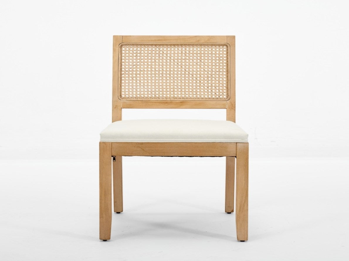 Comfortable and durable linen fabric upholstery with a stylish rattan backrest.FEATURE: The dining room chairs are defined by a square back with a cane inset for farmhouse appeal. Its solid wood frame is a finished hue with some visible distressing for an antiqued touchCHIC DESIGN: The breathable mesh rattan backrest...