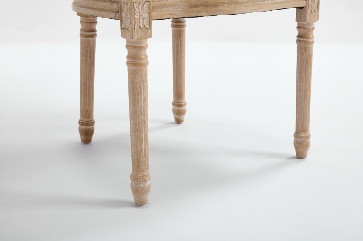 The chair is crafted with an engraving technique. The front legs feature decorative designs, making it even more beautiful and exquisite. Wire Drawing TechniquestThe chairs are crafted with a brushed finish, enhancing the chair's texture and making them more retro and classic.High-quality Cotton and Linen FabricThe French-style dining chairs are...