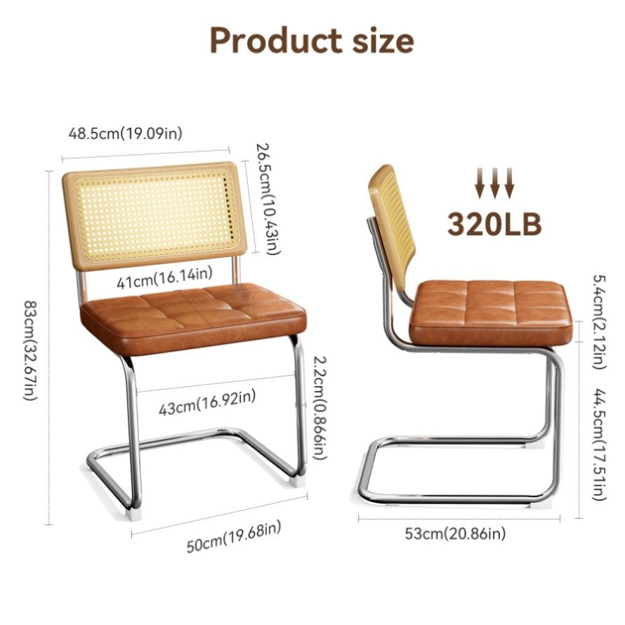 Premium Material Blend: The hand - woven stained rattan backrest exudes grace, while the high - quality faux leather seat, filled with high - density sponge, provides comfort and permeability. The breathable rattan mesh keeps you cool and dry, enhancing your seating experience.