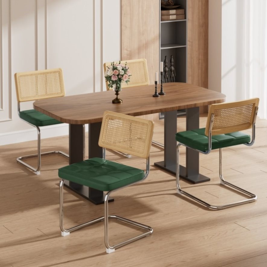 Natural Rattan Dining Chairs Set of 4, Modern Dining Room Chairs with Solid Wood Back for Kitchen W3010P298566