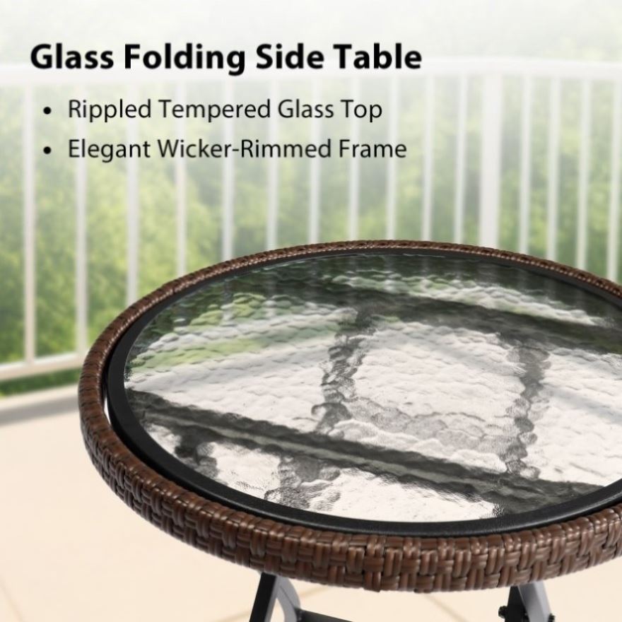 Outdoor Side, Round Rattan Patio Side, Small Foldable Wicker with Tempered Glass 35386669