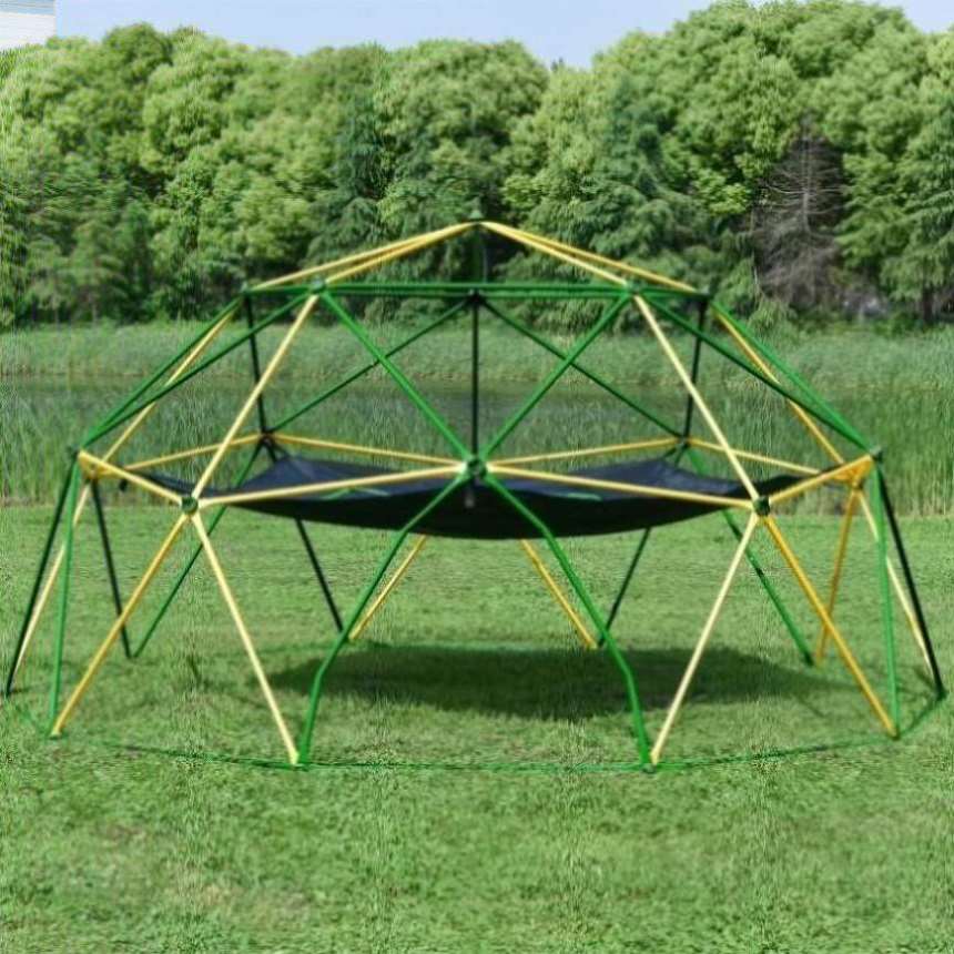 Do you want to turn your courtyard into a fantasy playground This green and grey climber dome is a perfect choice for your kids to exercise all parts of their bodies. Each steel pipe fulcrum is equipped with a climbing bracket that is convenient for kids to step on, which definitely stimulates children's climbing interest. This jungle gym is solid enough to bear weight within the indicated load-bearing capacity, so you don't need to worry about shaking. It's great amusement equipment for your kids both for outdoor and indoor use.