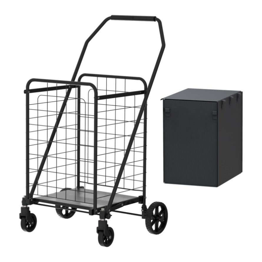 - Easy to Assemble: grocery cart on wheels also folds flat effortlessly,stays closed with the latch, and takes up very little space in the car. You can finished the assembly within 3 minutes according to our instruction