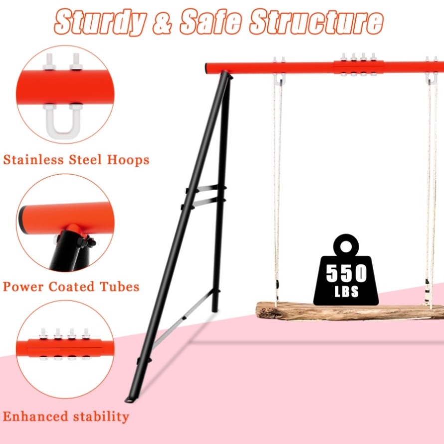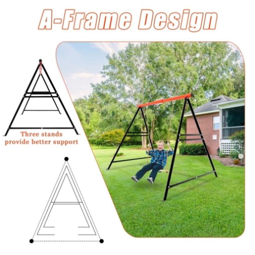 【Heavy Duty Swing Set】 Our porch swing is with an A-frame structure with 3 stabilizer bars on both sides. The toddler swing set can offer reliable stability. Kids' swing sets for the backyard allow the swing frame to hold up to 440 pounds, so you can enjoy your swing time with families or friends