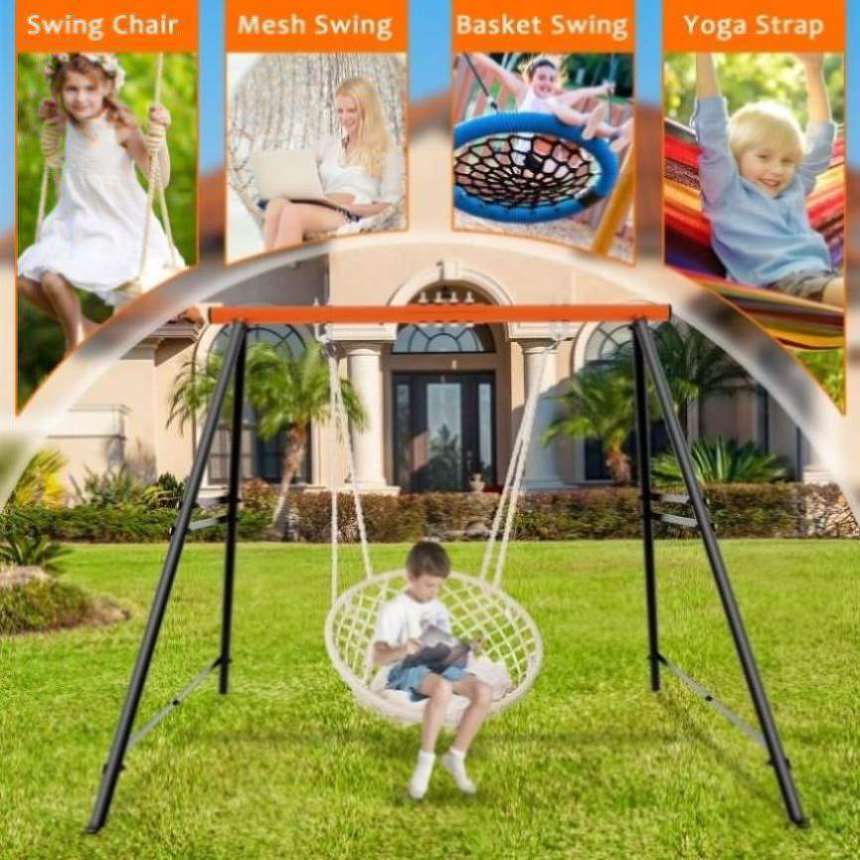 Swing Sets Backyard, Swingset Outdoor Kids, Toddler Porch Swing, Metal A-Frame Swing Stand 20773120
