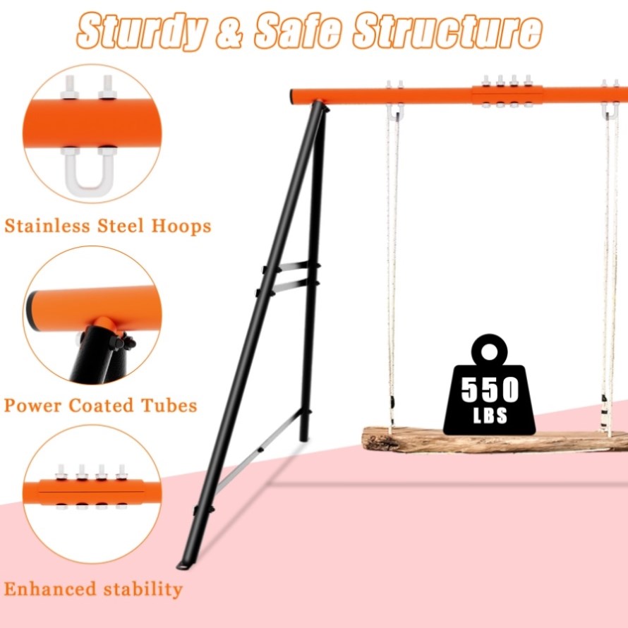 - 【Heavy Duty Swing Set】 Our porch swing is with an A-frame structure with 3 stabilizer bars on both sides. The toddler swing set can offer reliable stability. Kids' swing sets for the backyard allow the swing frame to hold up to 440 pounds, so you can enjoy your swing time with families or friends