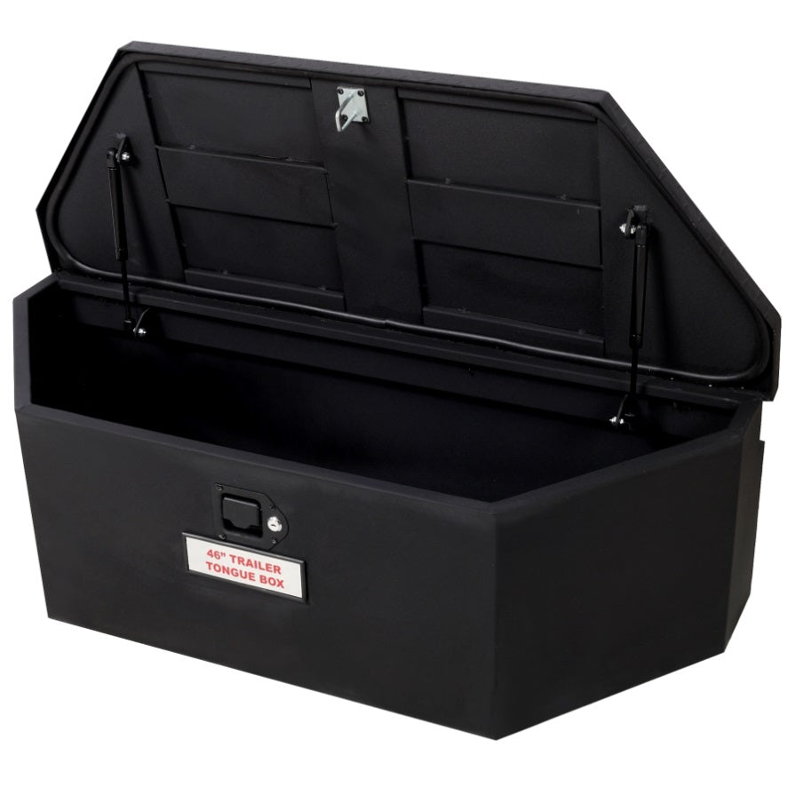 46"X18"X14.5" Tongue Truck Box Black Heavy Duty Steel Trailer Tongue Box, 6.7 CUFT Capacity, With W465P225052