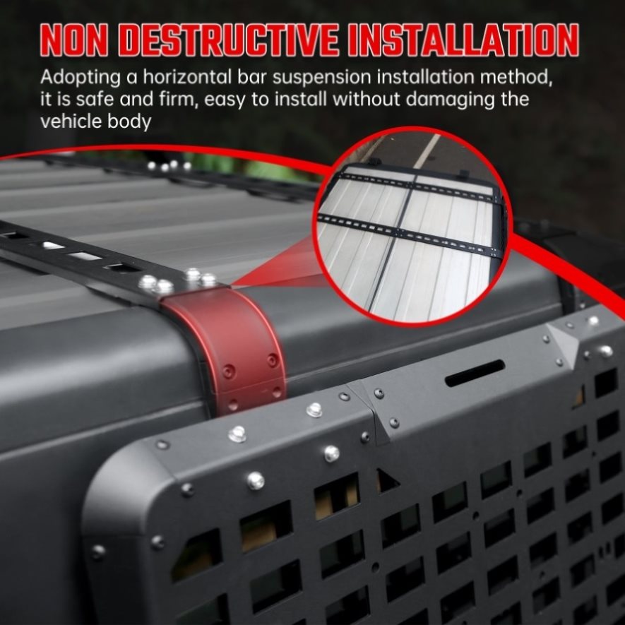 Non Destructive Installation(Attention is drawn to the attached figure 2)The Jeep Wrangler JK storage system comes with all necessary hardware and step-by-step instructions, taking some time to install and challenging your hands-on abilities. Designed specifically for Jeep enthusiasts, it improves storage efficiency and adventure readiness. We can provide any assistance at any time.